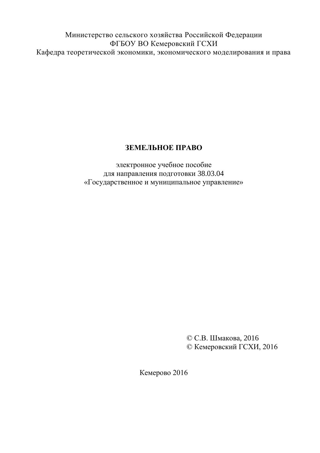 Земельное право: электронное учебное пособие для направления подготовки 38.03.04 «Государственное и муниципальное управление»