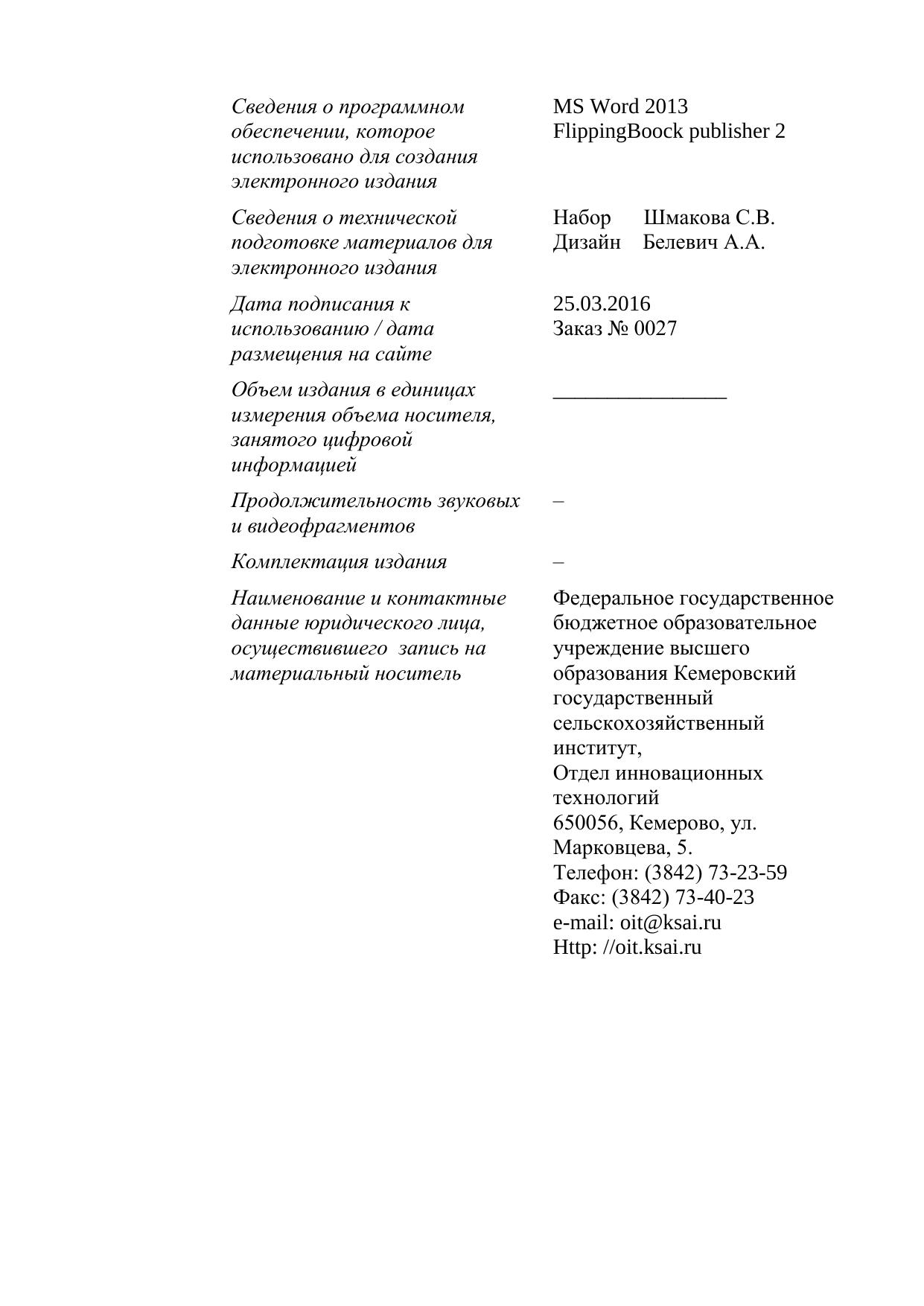Издательство: Кузбасская государственная селькохозяйственная академия