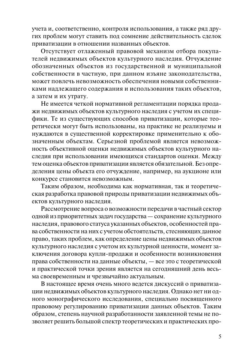 Правовое регулирование приватизации недвижимых объектов культурного наследия : монография