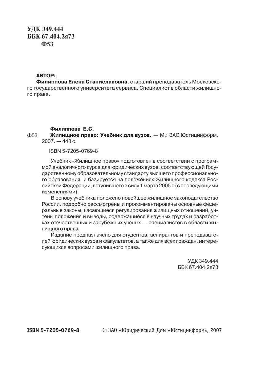 Учебник «Жилищное право» подготовлен в соответствии с программой аналогичного курса для юридических вузов, соответствующей Государственному образовательному стандарту высшего профессионального образования, и базируется на положениях Жилищного кодекса Российской Федерации, вступившего в силу 1 марта 2005 г. (с последующими изменениями).В основу учебника положено новейшее жилищное законодательство России, подробно рассмотрены и прокомментированы основные федеральные законы, касающиеся регулирования жилищных отношений, учтены положения и выводы, содержащиеся в научных трудах и разработках отечественных и зарубежных ученых — специалистов в области жилищного права.Издание предназначено для студентов, аспирантов и преподавателей юридических вузов и факультетов, а также для всех граждан, интересующихся вопросами жилищного права.