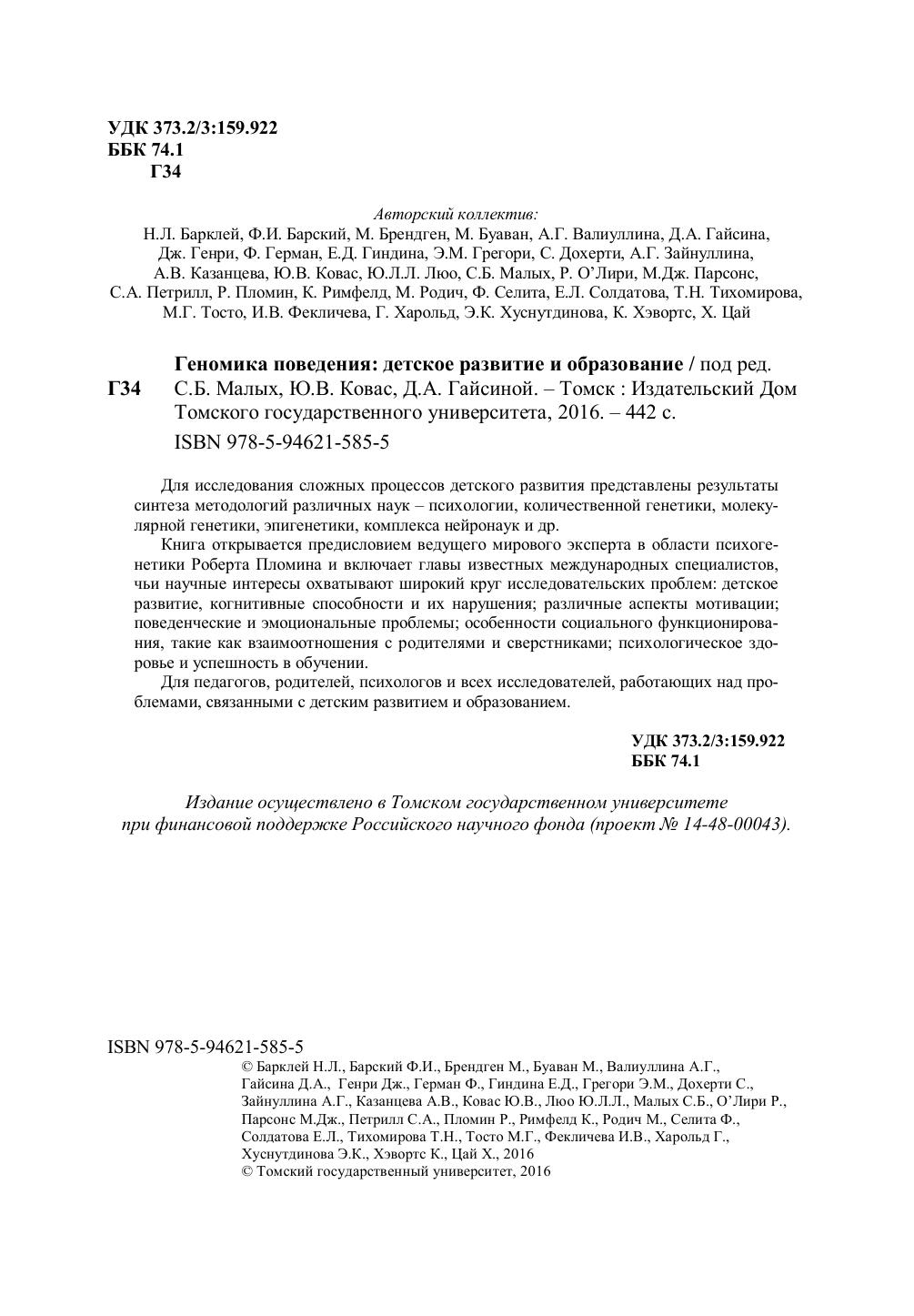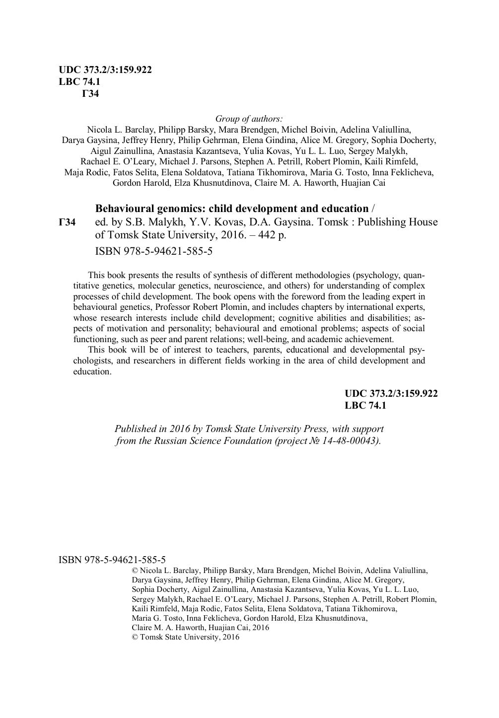 Для исследования сложных процессов детского развития представлены результаты синтеза методологий различных наук – психологии, количественной генетики, молекулярной генетики, эпигенетики, комплекса нейронаук и др. Книга открывается предисловием ведущего мирового эксперта в области психогенетики Роберта Пломина и включает главы известных международных специалистов, чьи научные интересы охватывают широкий круг исследовательских проблем: детское развитие, когнитивные способности и их нарушения, различные аспекты мотивации, поведенческие и эмоциональные проблемы, особенности социального функционирования, такие как взаимоотношения с родителями и сверстниками, психологическое здоровье и успешность в обучении. Для педагогов, родителей, психологов и всех исследователей, работающих над проблемами, связанными с детским развитием и образованием.
