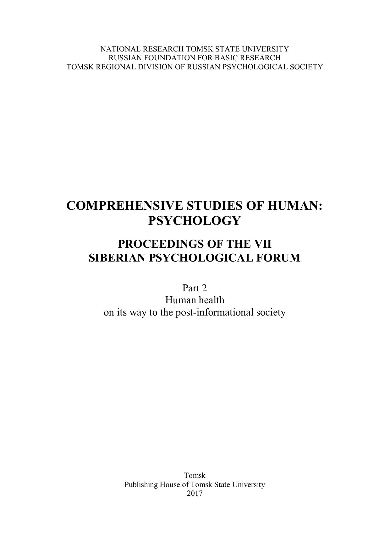 Комплексные исследования человека: психология. Часть 2. Здоровье человека на пути к постинформационному обществу