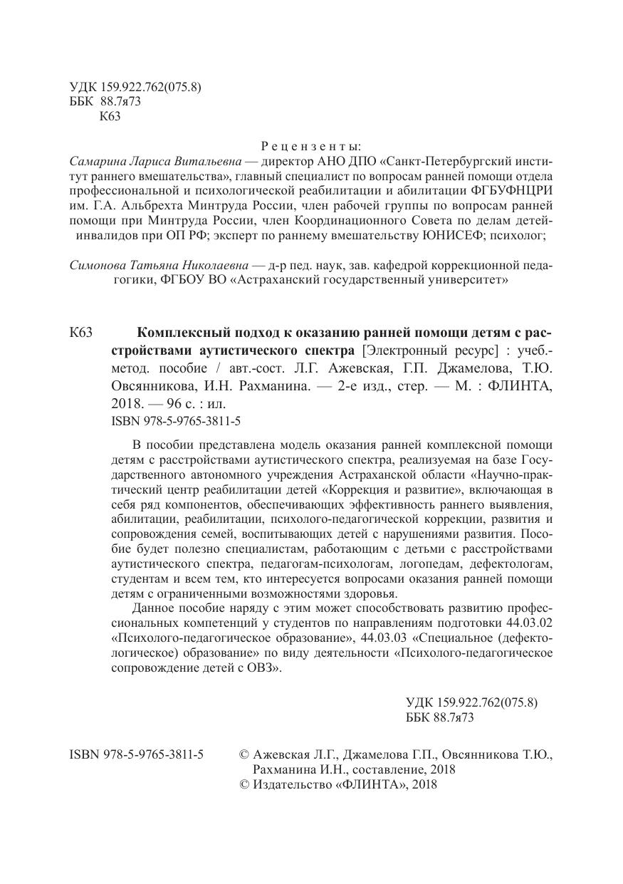 Комплексный подход к оказанию ранней помощи детям с расстройствами аутистического спектра: учеб.-метод. пособие