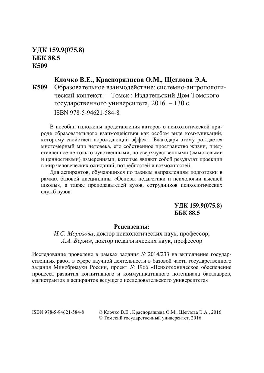 Авторы: Клочко В.Е., Краснорядцева О.М., Щеглова Э.А.
