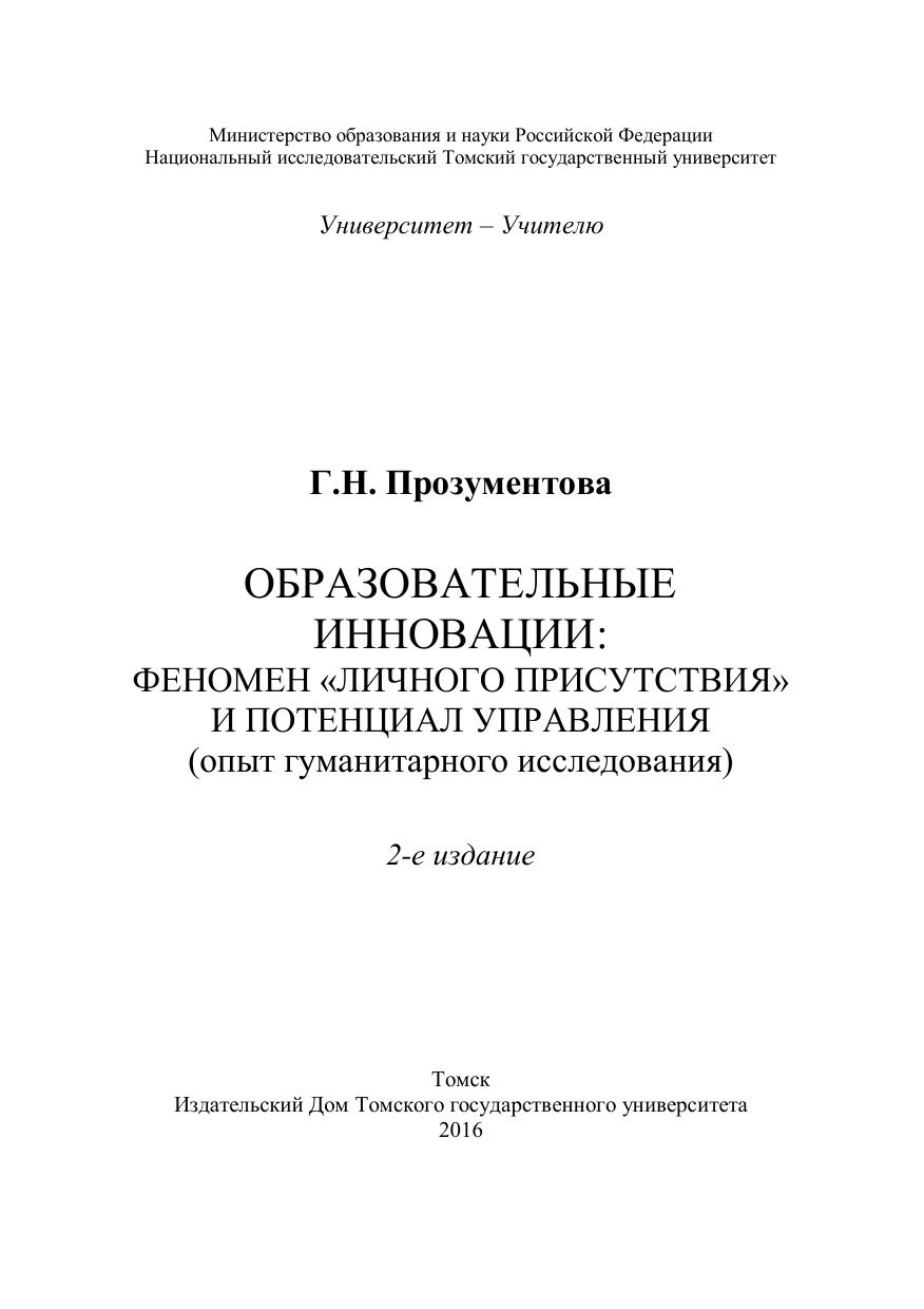 Образовательные инновации: феномен «личного присутствия» и потенциал управления (опыт гуманитарного исследования)