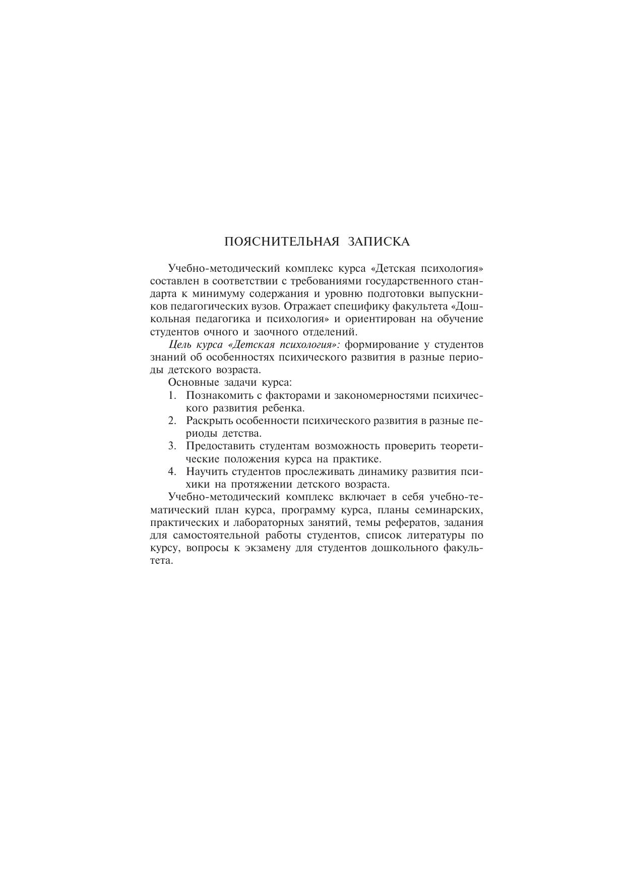 Учебно-методический комплекс курса "Детская психология" составлен в соответствии с Государственным образовательным стандартом высшего профессионального образования по специальности "Психология". Издание включает программу курса, планы семинарских и лабораторных занятий, задания для самостоятельной работы и темы рефератов, литературу по курсу и вопросы к экзаменя. Для студентов и преподавателей психологических факультетов вузов.