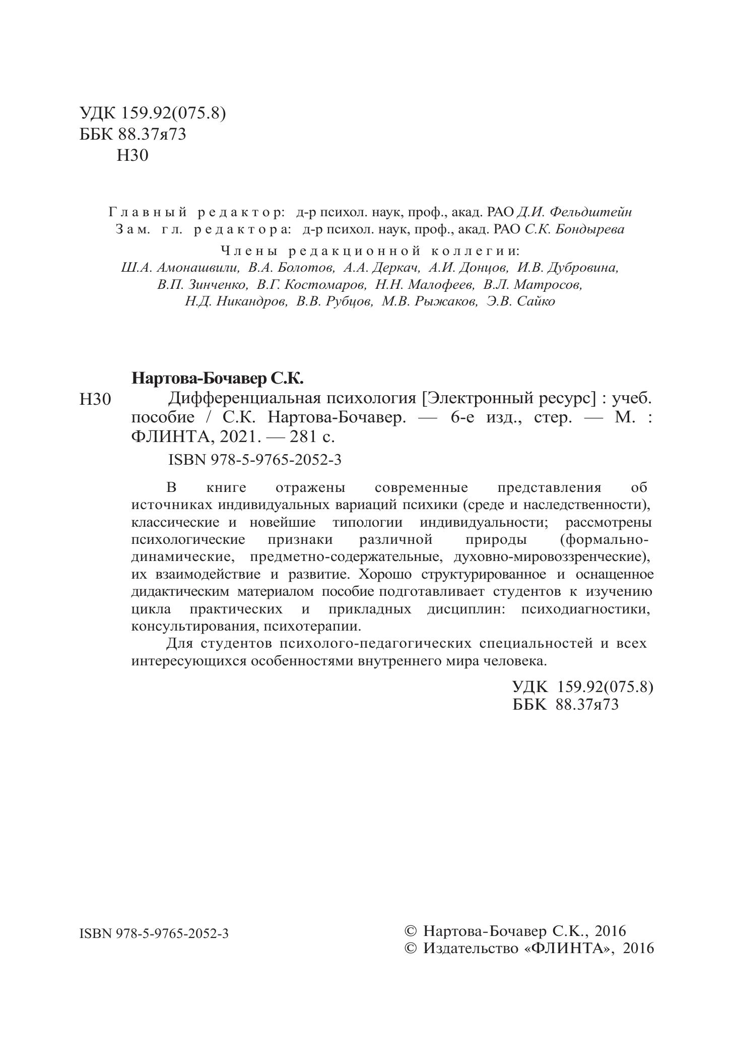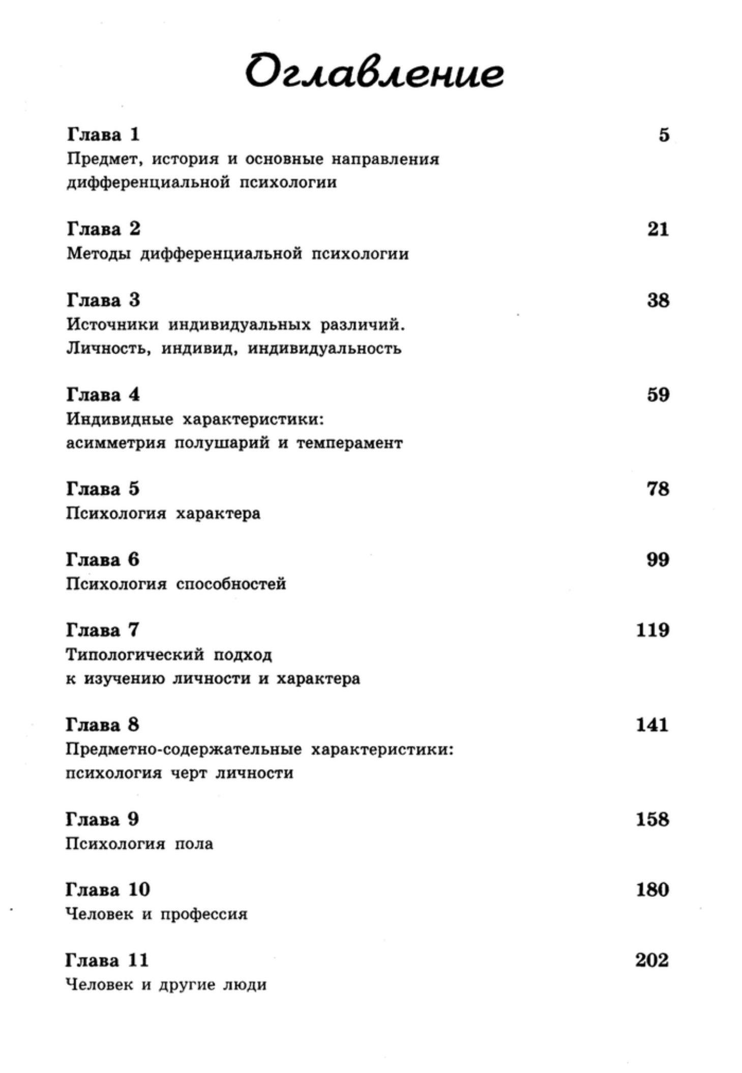 В книге отражены современные представления об источниках индивидуальных вариаций психики (среде и наследственности), классические и новейшие типологии индивидуальности; рассмотрены психологические признаки различной природы (формально-динамические, предметно-содержательные, духовно-мировоззренческие), их взаимодействие и развитие. хорошо структурированное и оснащенное дидактическим материалом пособие подготавливает студентов к изучению цикла практических и прикладных дисциплин: психодиагностики, консультирования, психотерапии.