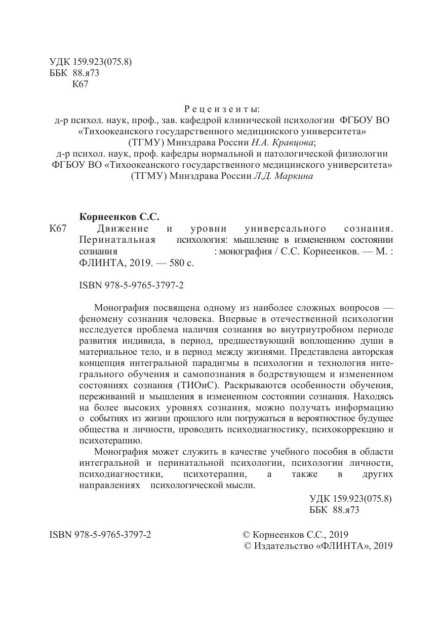 Монография может служить в качестве учебного пособия в области интегральной и перинатальной психологии, психологии личности,