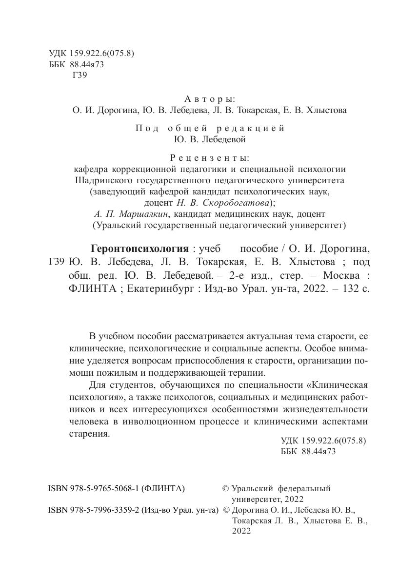 Для студентов, обучающихся по специальности «Клиническая психология», а также психологов, социальных и медицинских работников и всех интересующихся особенностями жизнедеятельности человека в инволюционном процессе и клиническими аспектами старения.