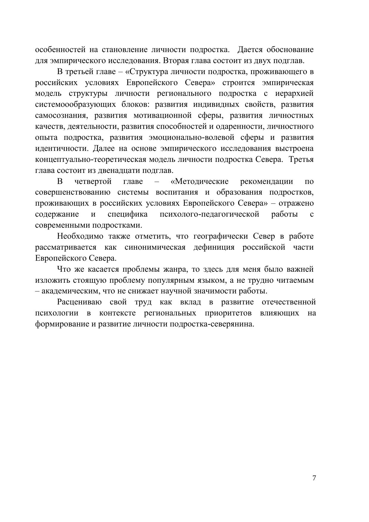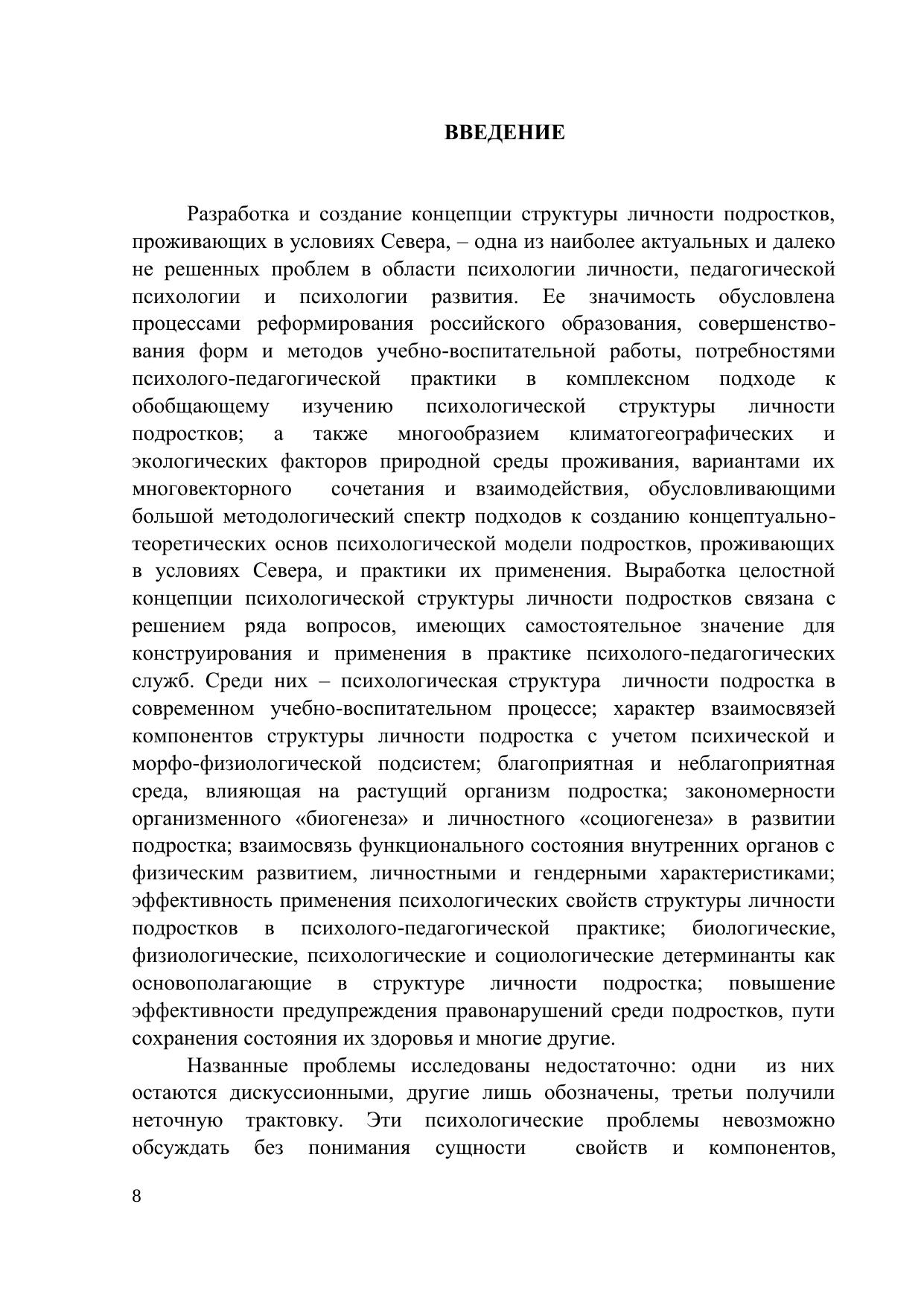 В монографии представлены результаты исследования, структуры личности подростка в соответствии с основными подходами отечественных и зарубежных ученых. Автором обобщен многолетний опыт собственных эмпирических исследований и обозначены характерные особенности подростков Севера. Впервые с учетом климатогеографических, экологических и культурно-исторических факторов разработана концепция и выстроена структура личности подростка, проживающего в условиях Севера. Работа адресована психологам, педагогам, валеологам и другим заинтересованным лицам, участвующим в воспитании подрастающего поколения.