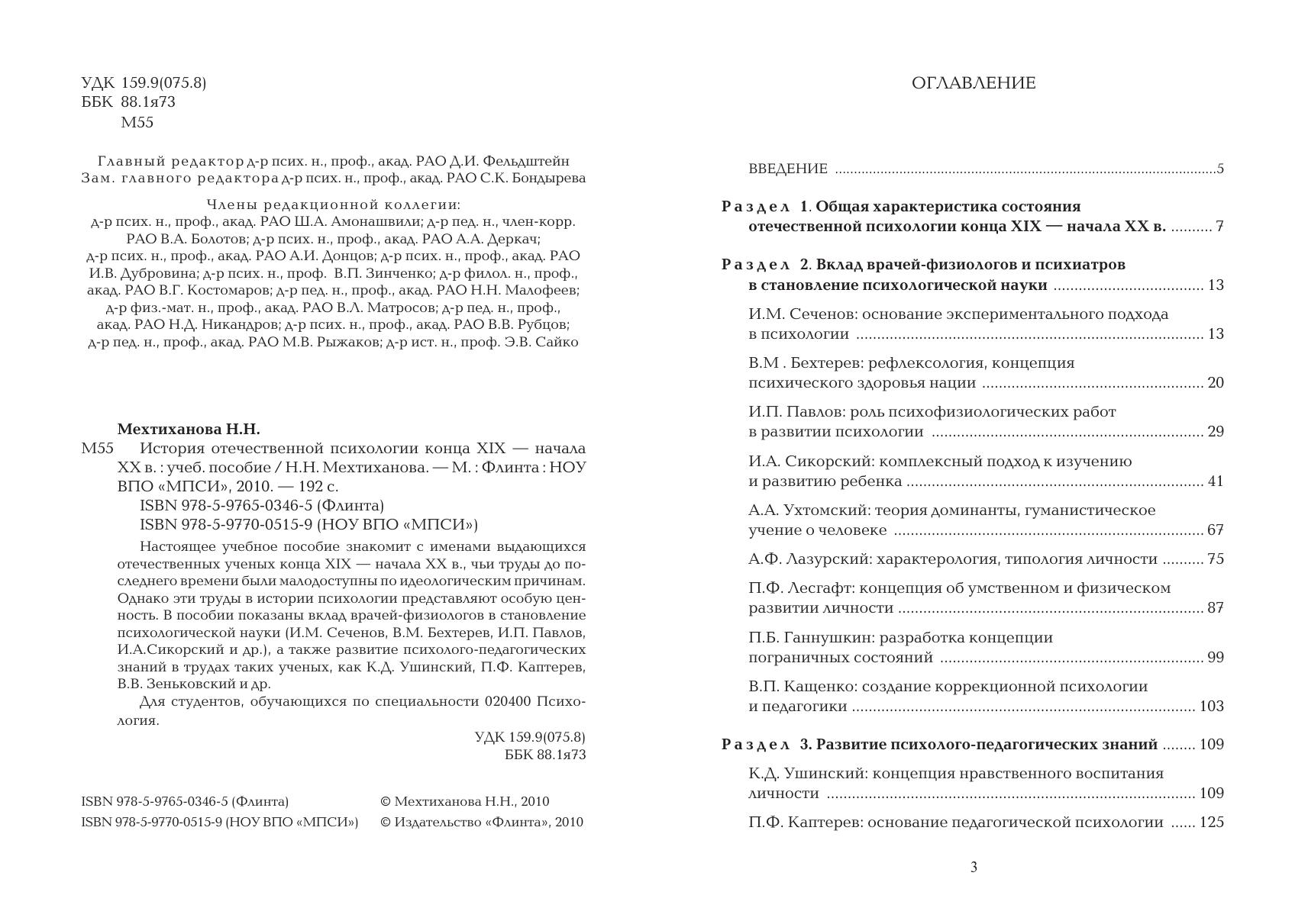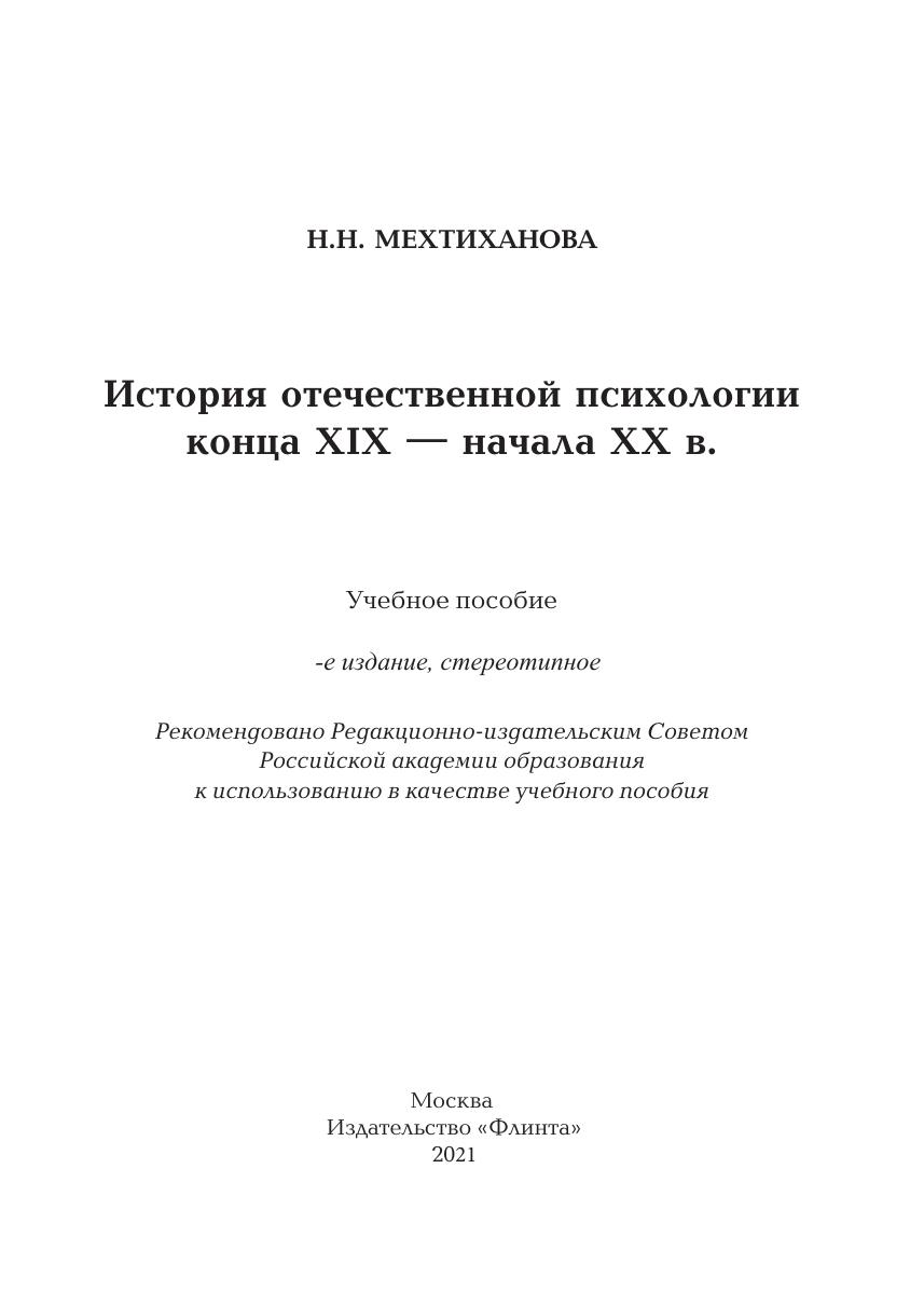 Настоящее учебное пособие знакомит с именами выдающихся отечественных ученых конца XIX — начала XX в., чьи труды до последнего времени были малодоступны по идеологическим причинам. однако эти труды в истории психологии представляют особую ценность. в пособии показаны вклад врачей-физиологов в становление психологической науки (И.М. Сеченов, В.М. Бехтерев, И.П. Павлов, И.А.Сикорский и др.), а также развитие психолого-педагогических знаний в трудах таких ученых, как К.Д. Ушинский, П.Ф. Каптерев, В.В. Зеньковский и др. Для студентов, обучающихся по специальности 020400 Психология.