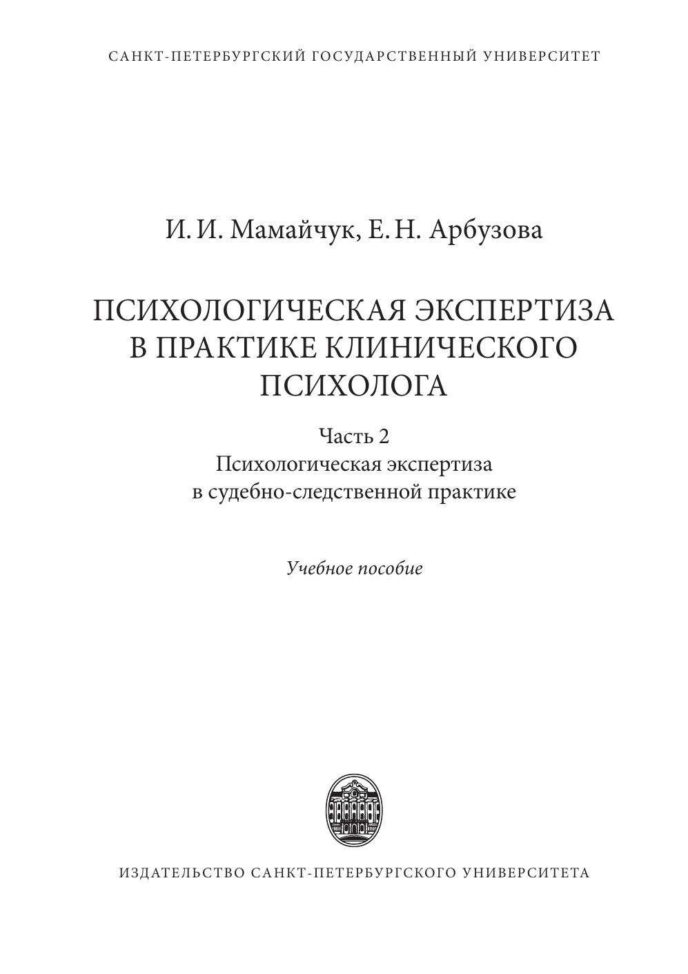 Психологическая экспертиза в практике клиничекого психолога. Часть 2. Психологическая экспертиза в судебно-следственной практике
