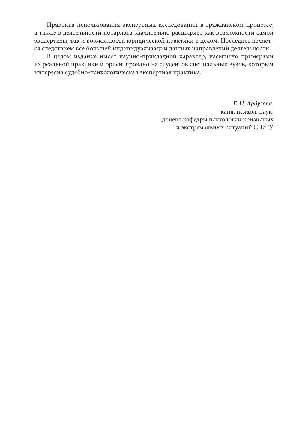 В данном учебном пособии отражены направления и специфика работы клинического психолога в экспертной судебной практике. Рассмотрены история судебно-психологической экспертизы, методы психологической экспертизы в судебно-следственной практике с учетом классификации правонарушений и преступлений. Приведены примеры судебно-психологической экспертизы несовершеннолетних, свидетелей и преступных групп, брачно-семейных отношений. отдельная глава посвящена экспертизе противоправного психологического воздействия. Учебное пособие рекомендовано не только студентам, обучающимся по специальности "Клиническая психология", но и клинических психологам-практикам , клиницистам, педагогам и юристам.