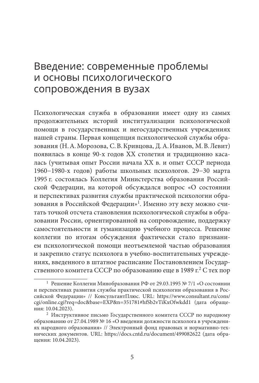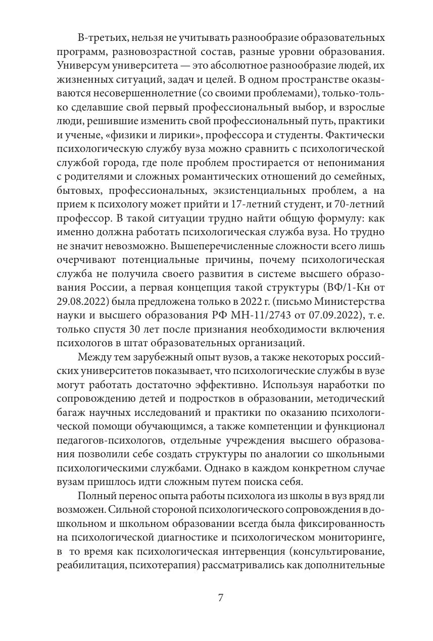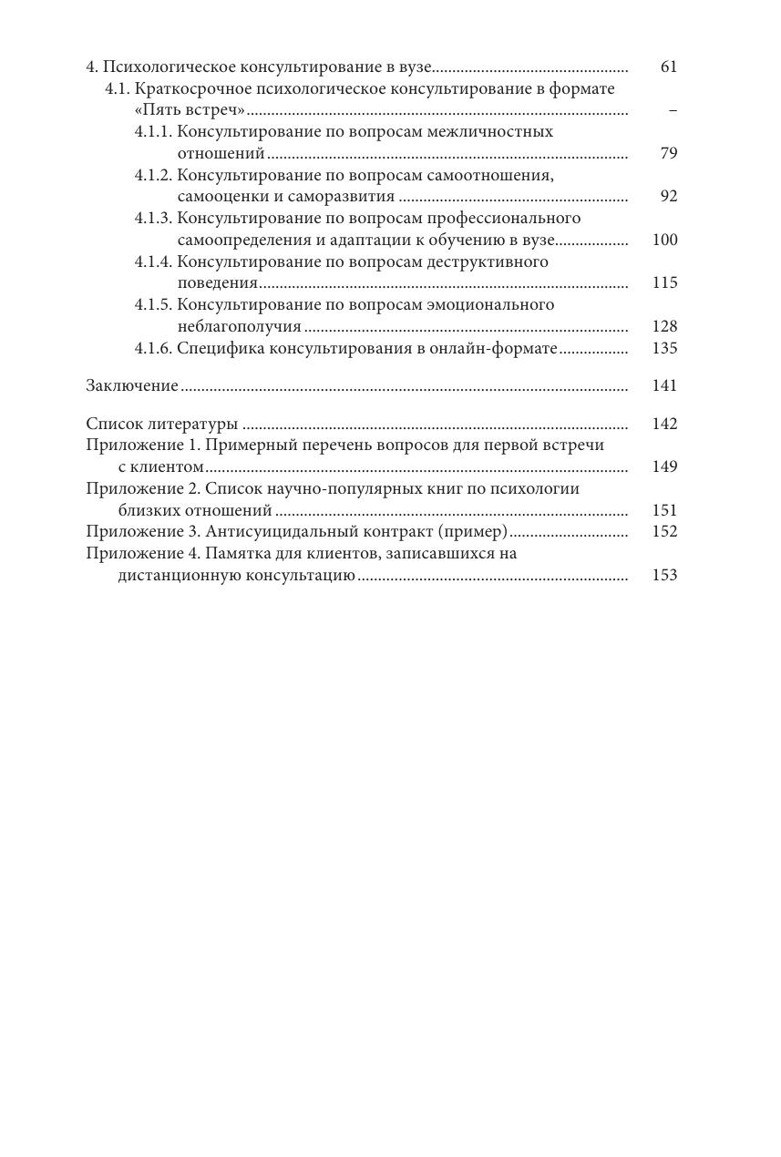Учебно-методическое пособие обобщает 20-летний опыт работы Психологической клиники СПбГУ. Особое внимание уделено вопросам организации деятельности психологических служб в вузе, а также описанию специфики проблем, с которыми сталкиваются обучающиеся. Ведущим направлением деятельности психологической службы в вузе рассматривается оказание кризисной психологической помощи. В пособии подробно представлена модель краткосрочного психологического консультирования как эффективная форма оказания психологической помощи. В отдельном разделе обсуждаются этические аспекты и проблемы психологического консультирования в вузе; приведены практические рекомендации по организации психологической помощи в онлайн-формате. Пособие адресовано организаторам и специалистам психологических служб вузов, а также может быть использовано студентами-психологами, обучающимися по программам психологической, психолого-педагогической и социальной направленности.