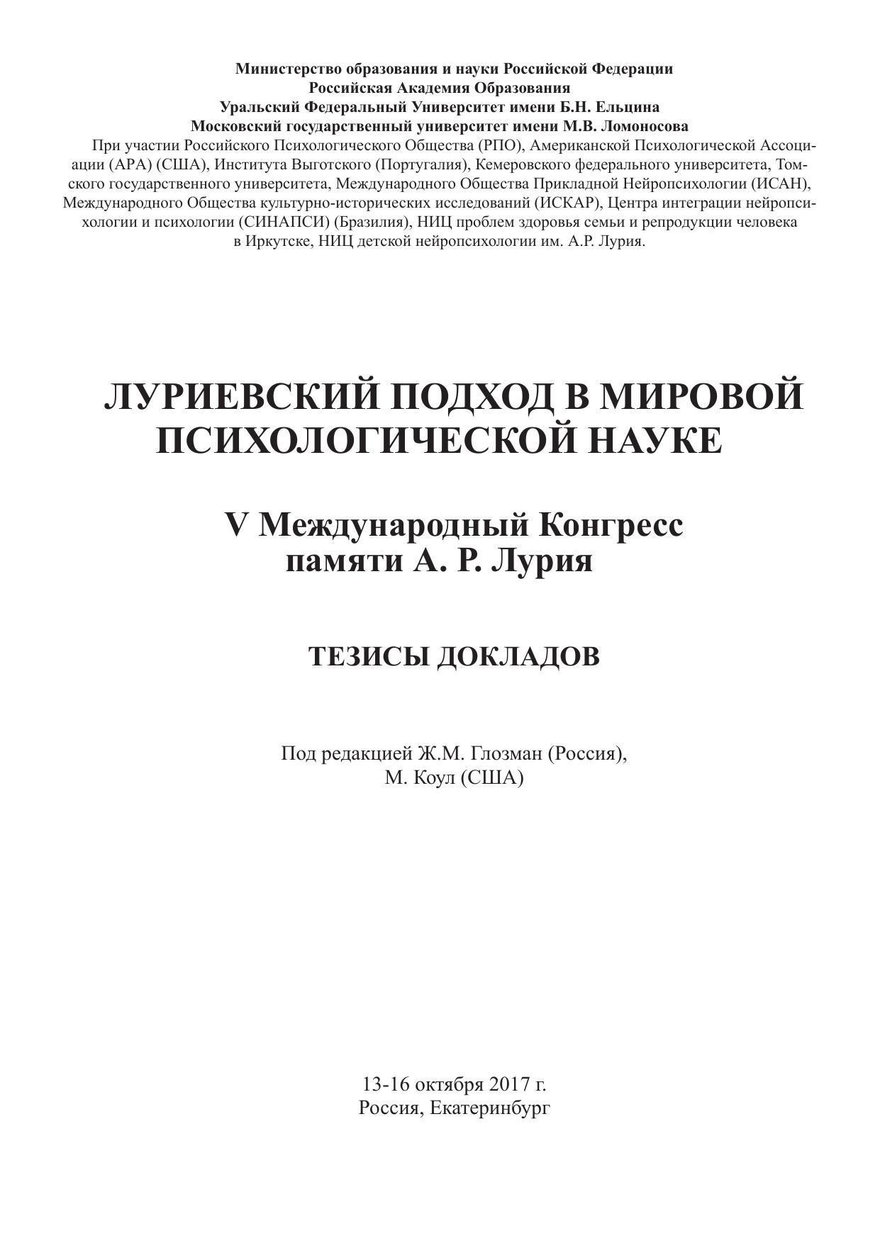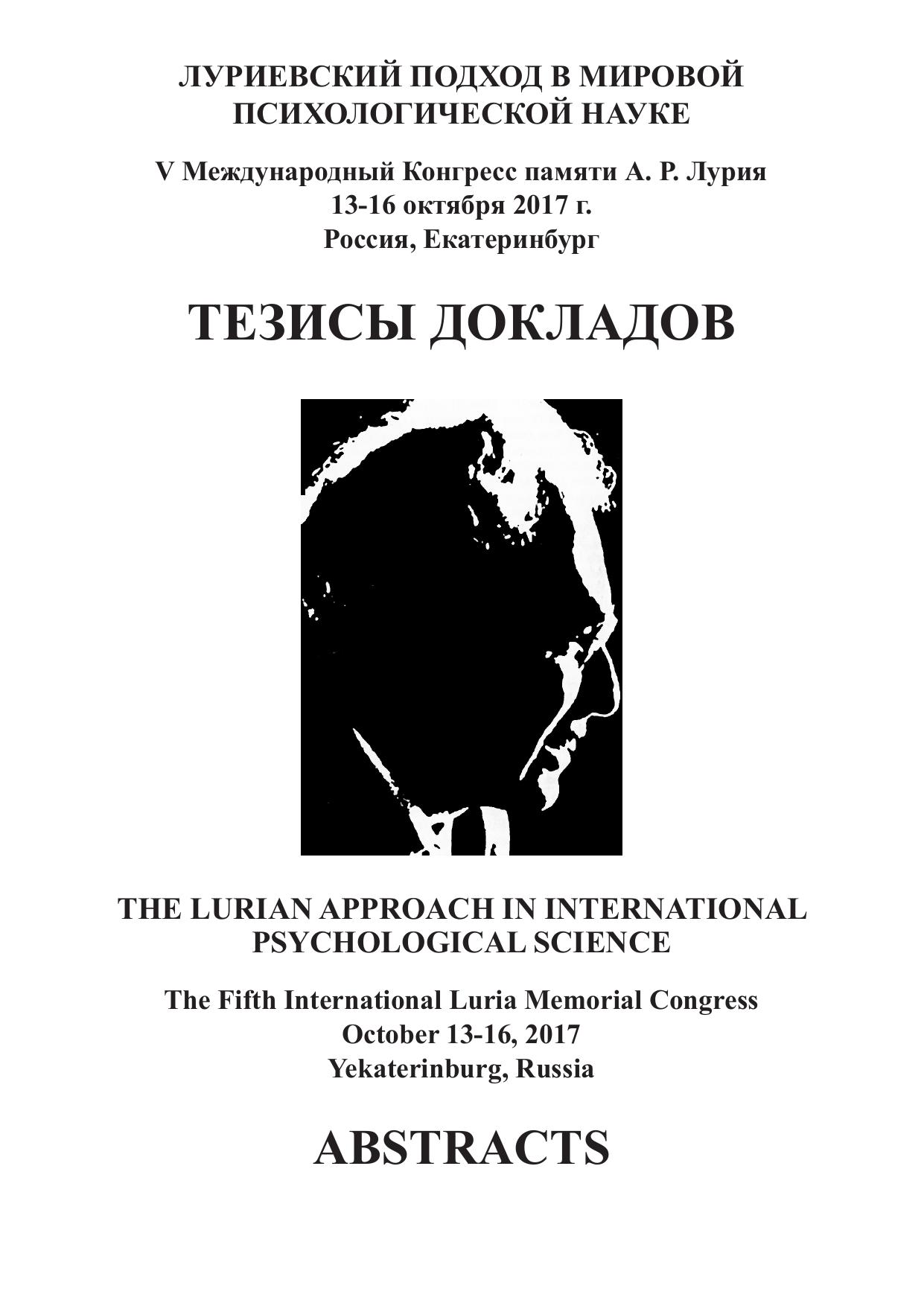 Луриевский подход в мировой психологической науке: тезисы докладов. Екатеринбург