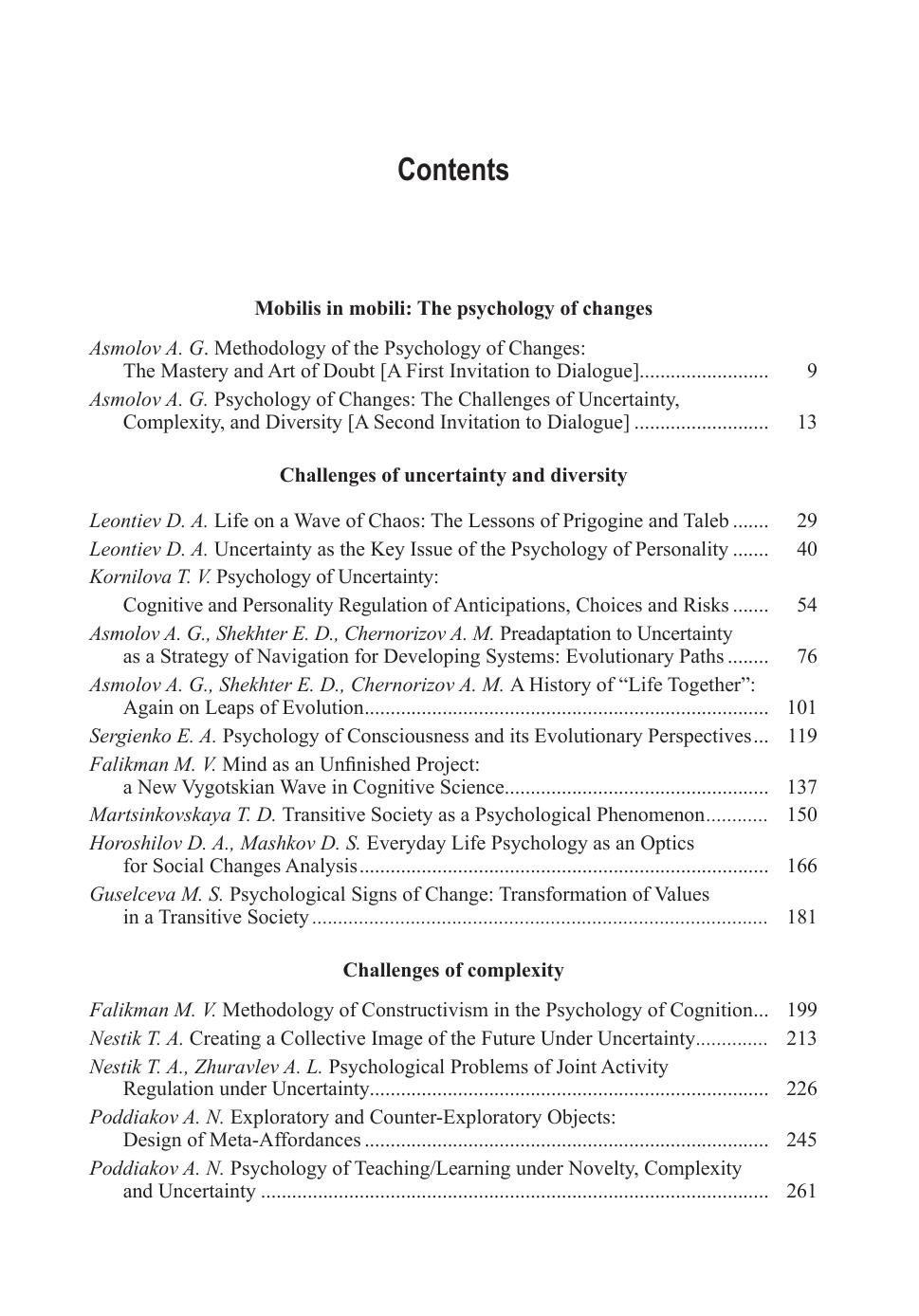 В XXI веке представители самых разных наук об эволюции человека, природы и общества все более убеждаются в том, что древнее предостережение о рисках и опасностях жизни в эпоху перемен становится сбывшимся пророчеством. Трансформация эпохи перемен в повседневную реальность нашего текучего времени послужила толчком для разработки таких зарождающихся в пограничных областях психологии направлений исследования как психология неопределенности и разнообразия, психология сложности, психология изменяющейся личности, интегрированных в рамках проекта «Mobilis in mobili: личность в эпоху перемен». Книга, объединяющая поиски исследователей факультета психологии МГУ имени М.В. Ломоносова и других ведущих центров психологической науки. Адресована читателям, которых волнует психология человека, принимающего решения и совершающего поступки в условиях вызовов неопределенности, сложности и разнообразия стремительно эволюционирующего мира.