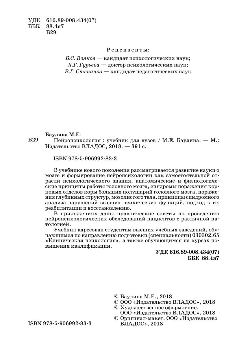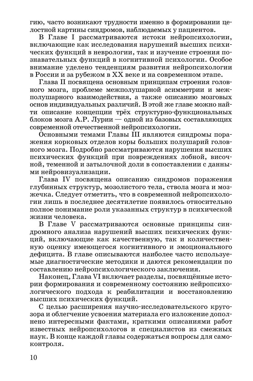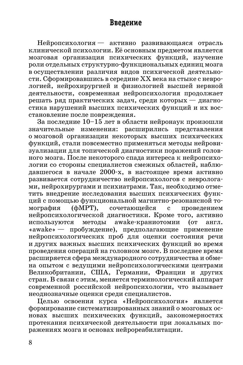 В учебнике нового поколения рассматривается развитие науки о мозге и формирование нейропсихологии как самостоятельной отрасли психологического знания, анатомические и физиологические принципы работы головного мозга, синдромы поражения корковых отделов коры больших полушарий головного мозга, поражения глубинных структур, мозолистого тела, принципы синдромного анализа нарушений высших психических функций, подход к их реабилитации и восстановлению.