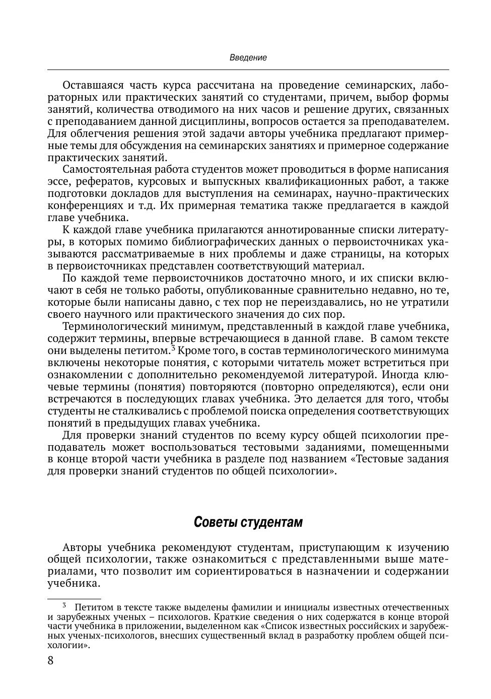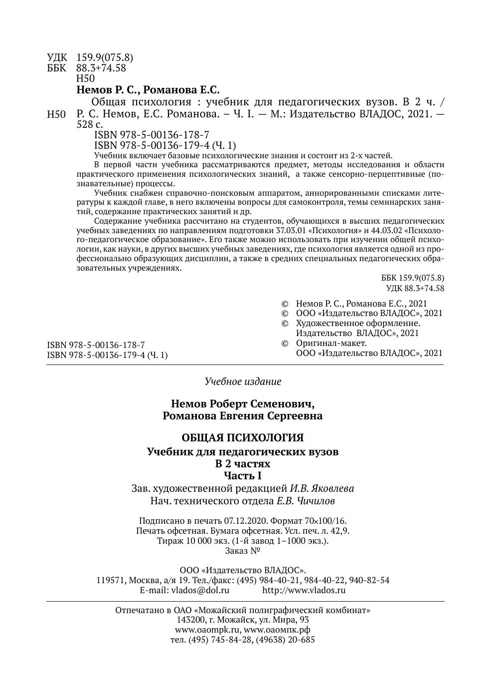 Учебник включает базовые психологические знания и состоит из 2-х частей. В первой части учебника рассматриваются предмет, методы исследования и области практического применения психологических знаний, а также сенсорно-перцептивные (познавательные) процессы. Учебник снабжен справочно-поисковым аппаратом, аннорированными списками литературы к каждой главе, в него включены вопросы для самоконтроля, темы семинарских занятий, содержание практических занятий и др. Содержание учебника рассчитано на студентов, обучающихся в высших педагогических учебных заведениях по направлениям подготовки 37.03.01 «Психология» и 44.03.02 «Психолого-педагогическое образование». Его также можно использовать при изучении общей психологии, как науки, в других высших учебных заведениях, где психология является одной из профессионально образующих дисциплин, а также в средних специальных педагогических образовательных учреждениях.