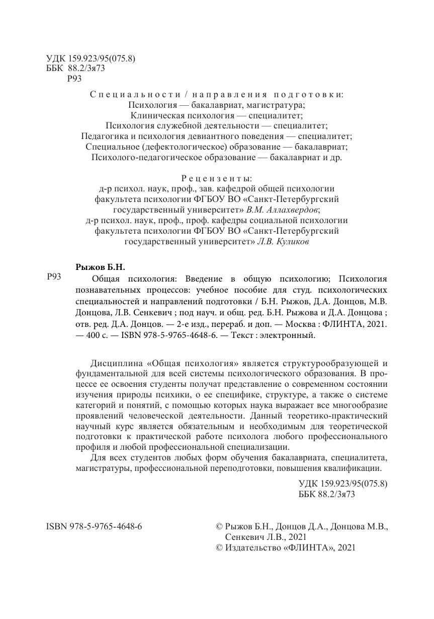 Общая психология: Введение в общую психологию, психология познавательных процессов