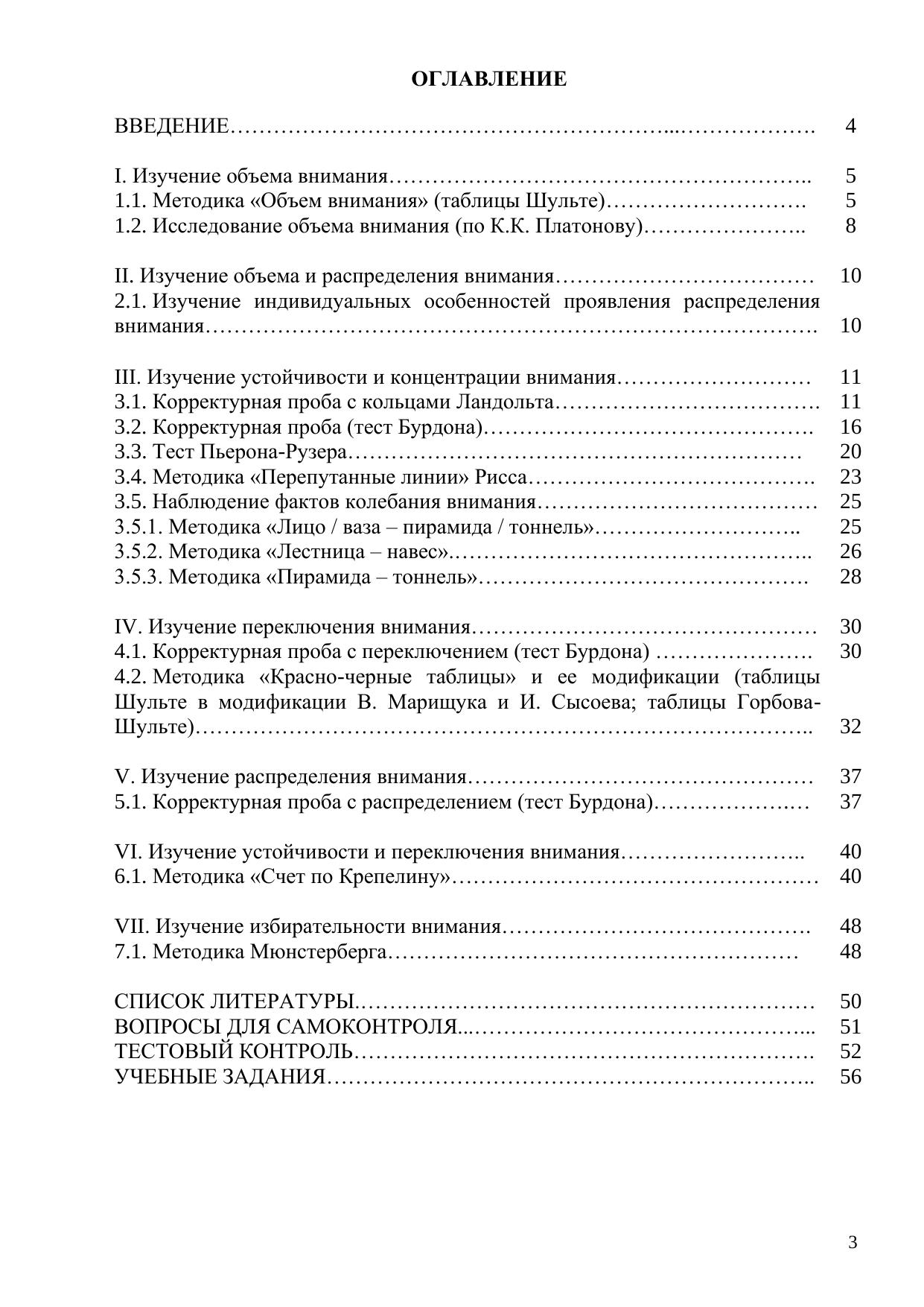 Пособие содержит методы исследования внимания, вопросы для самоконтроля, учебные задачи, тестовый контроль, список литературы.