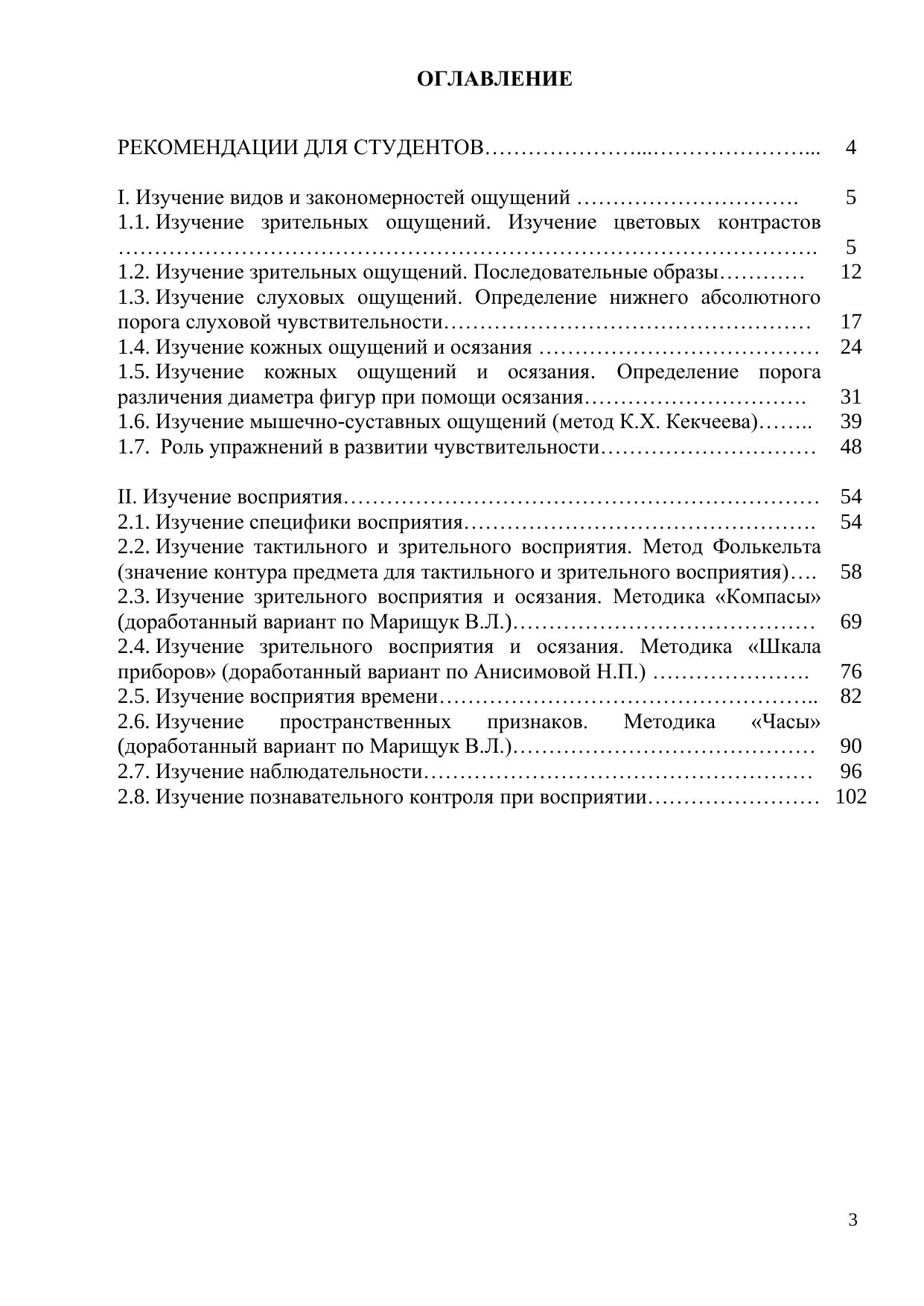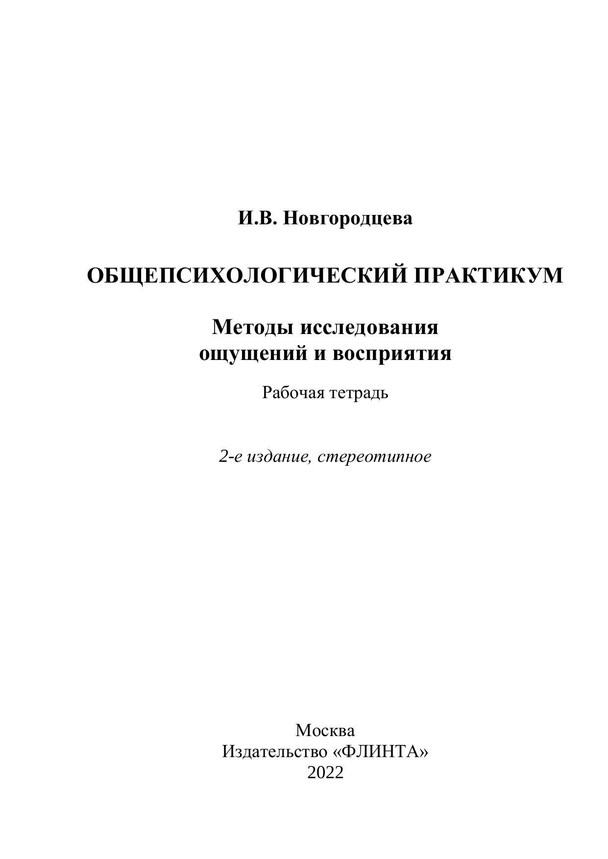 Общепсихологический практикум. Методы исследования ощущений и восприятия