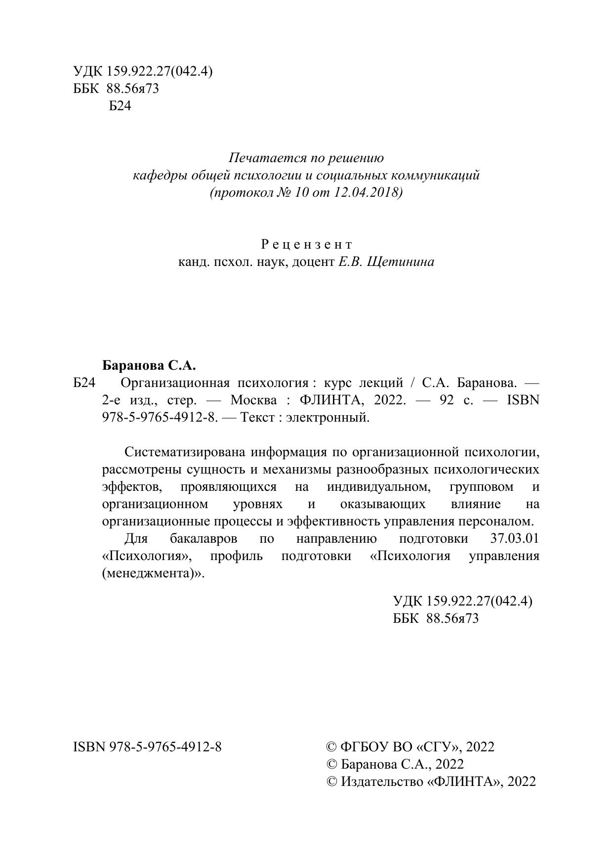 Систематизирована информация по организационной психологии, рассмотрены сущность и механизмы разнообразных психологических эффектов, проявляющихся на индивидуальном, групповом и организационном уровнях и оказывающих влияние на организационные процессы и эффективность управления персоналом.