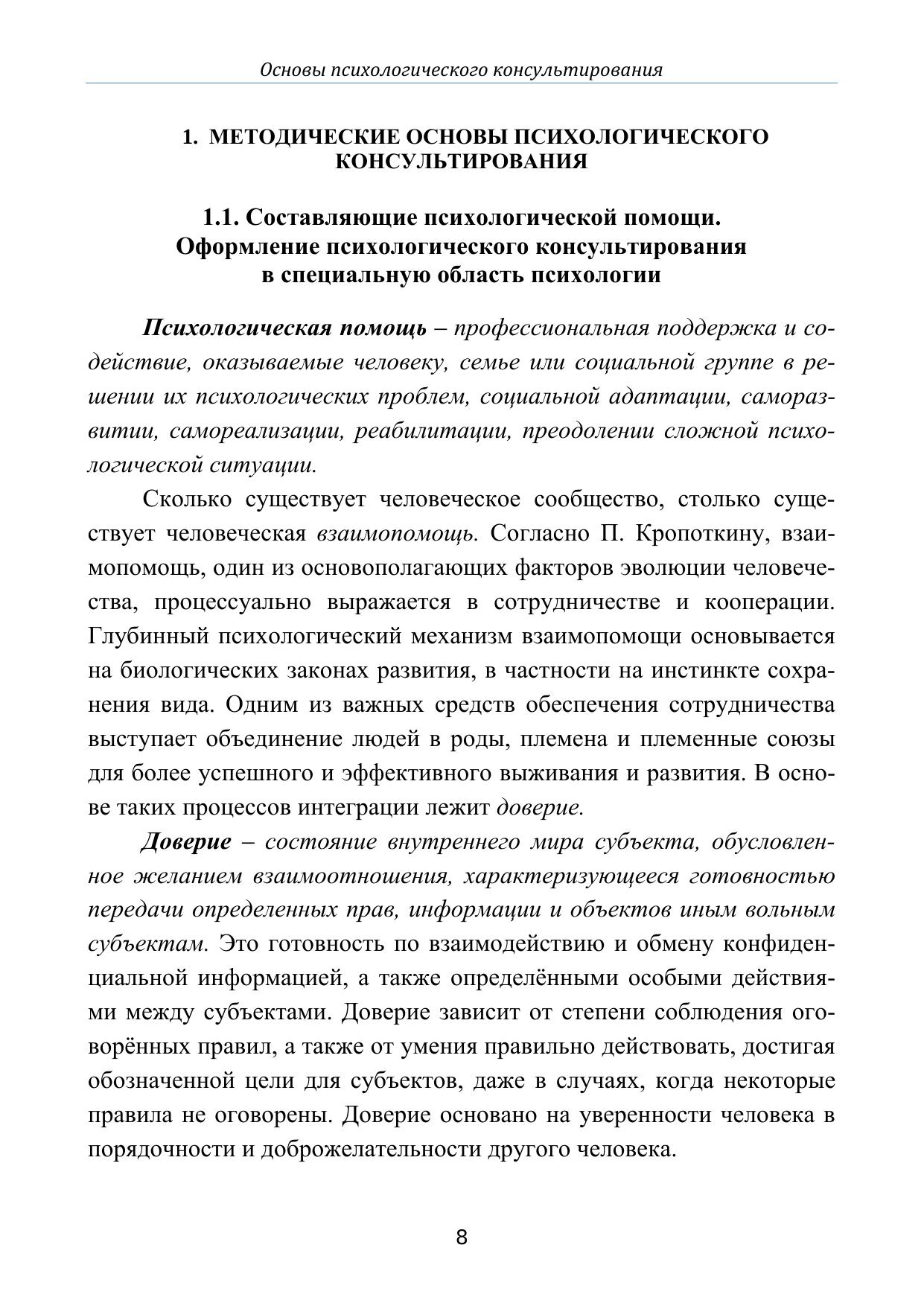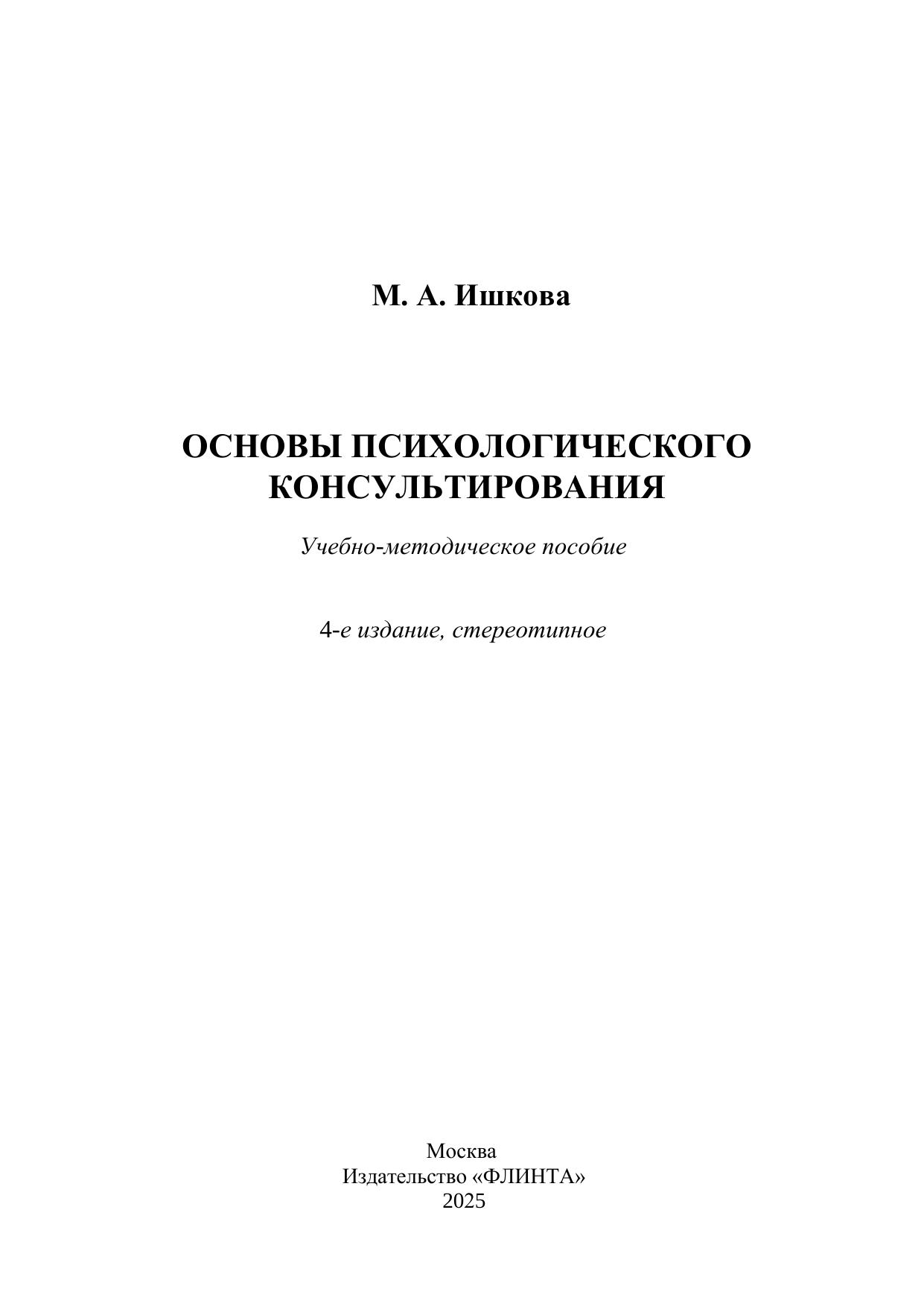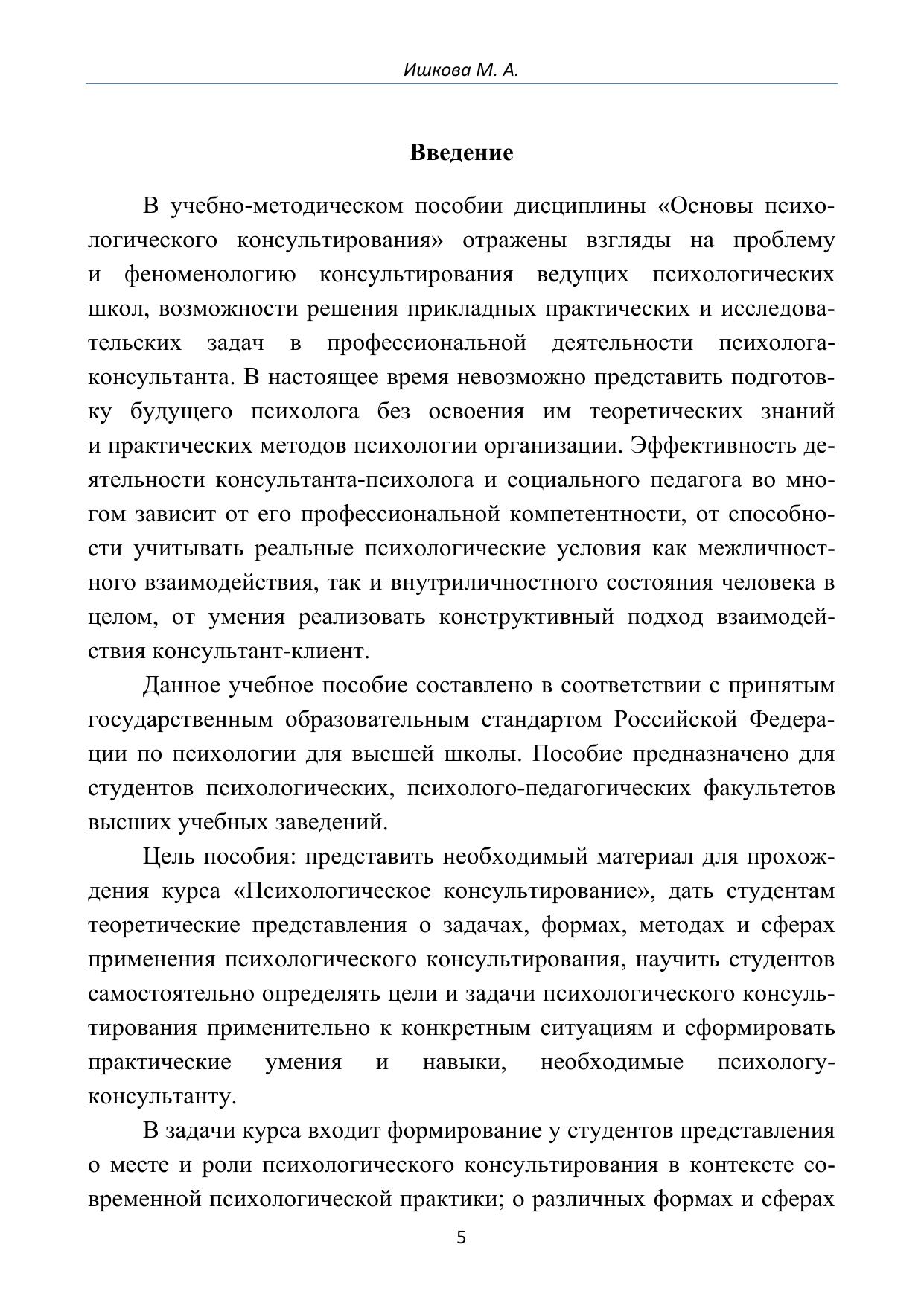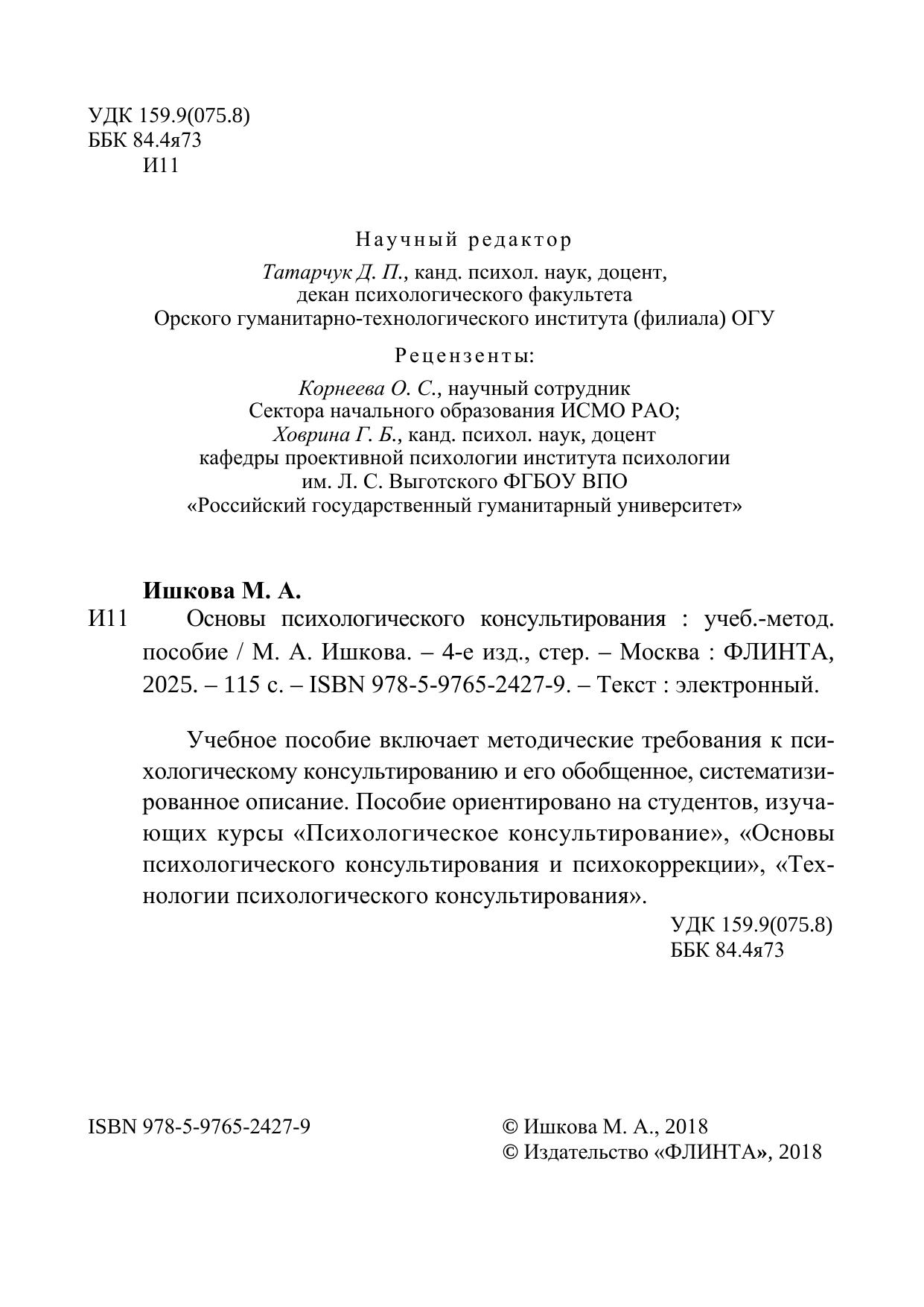 Учебное пособие включает методические требования к психологическому консультированию и его обобщенное, систематизированное описание. Пособие ориентировано на студентов, изучающих курсы «Психологическое консультирование», «Основы