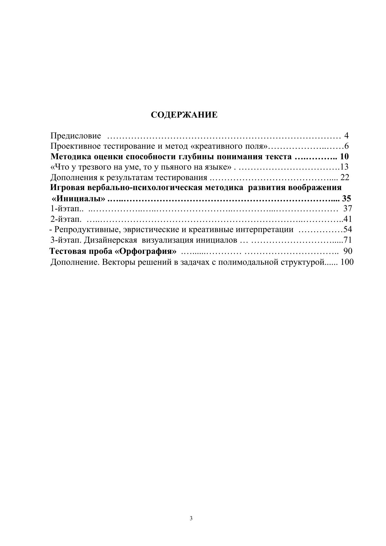 В книге описываются исследования особенностей познавательной деятельности человека: «Пословица» – методика оценки способности глубины понимания текста», «Инициалы» – вербально-психологическая методика развития воображения», «Орфография» – тестовая проба в исследованиях познавательной активности».
