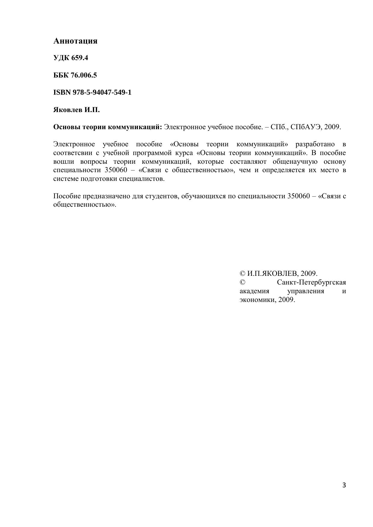 Электронное учебное пособие «Основы теории коммуникаций» разработано в соответствии с учебной программой курса «Основы теории коммуникаций». В пособие вошли вопросы теории коммуникаций, которые составляют общенаучную основу специальности 350060 – «Связи с общественностью», чем и определяется их место в системе подготовки специалистов. Пособие предназначено для студентов, обучающихся по специальности 350060 – «Связи с общественностью». Электронное учебное пособие для дистанционного обучения