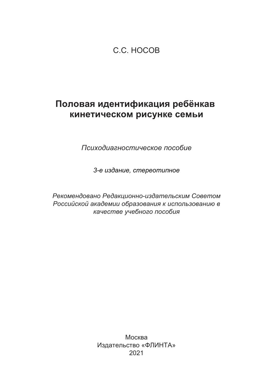 Половая идентификация ребенка в кинетическом рисунке семьи: психодиагностическое пособие