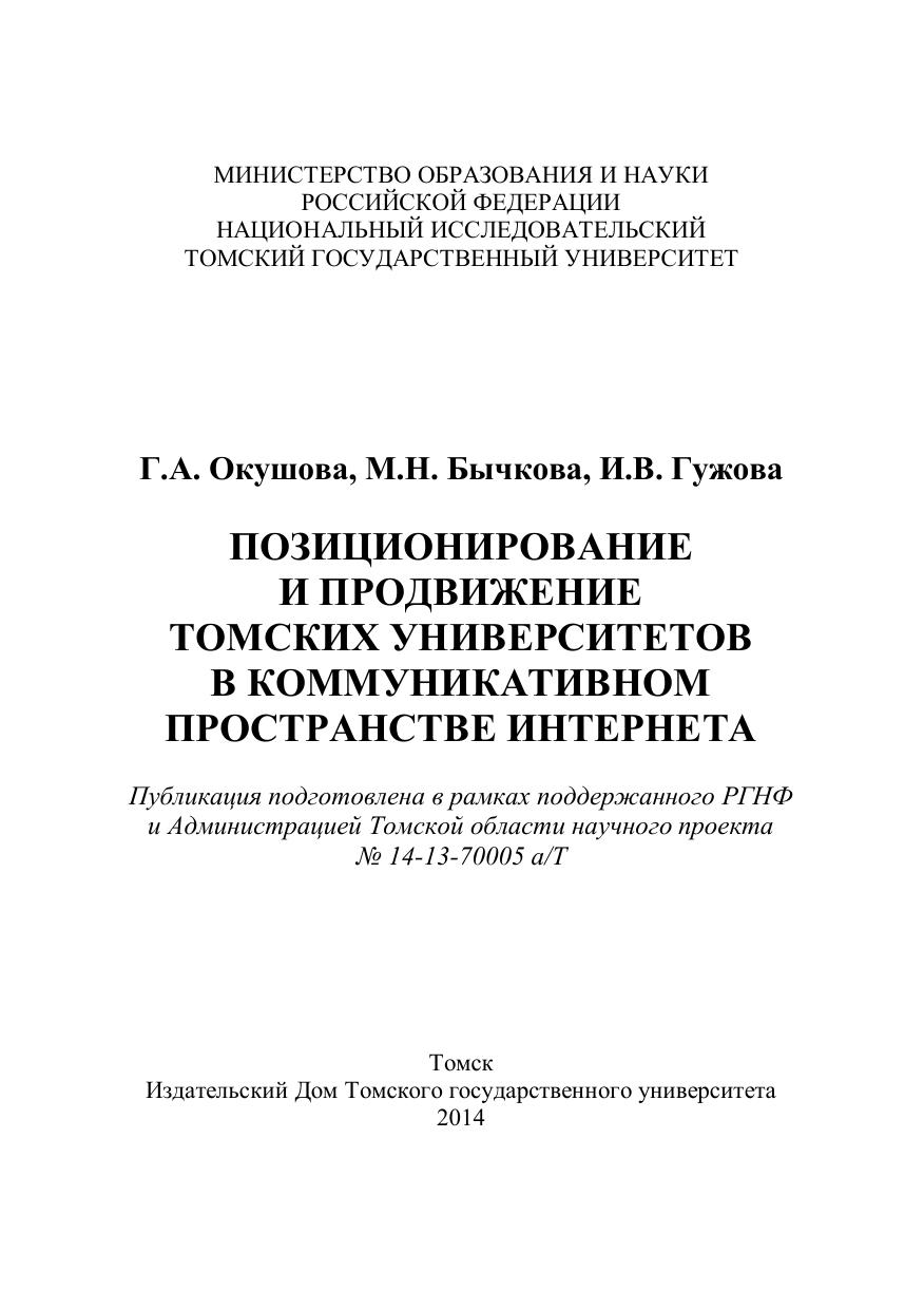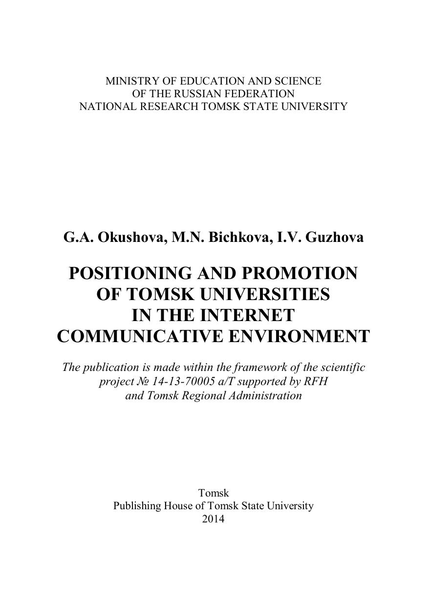 Позиционирование и продвижение томских университетов в коммуникативном пространстве Интернета