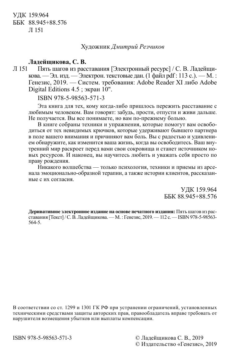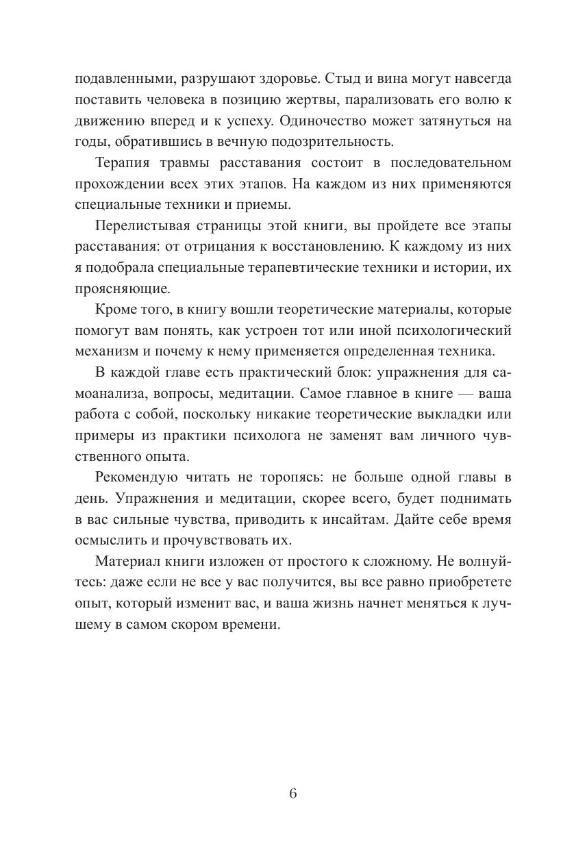 В книге собраны техники и упражнения, которые помогут вам освободиться от тех невидимых крючков, которые удерживают бывшего партнера в поле вашего внимания и причиняют вам боль. Вы с радостью и удивлением обнаружите, как изменится ваша жизнь, когда вы освободитесь. Ваш внутренний мир раскроет перед вами свои сокровища и станет источником новых ресурсов. И наконец, вы научитесь любить и уважать себя просто по праву рождения.