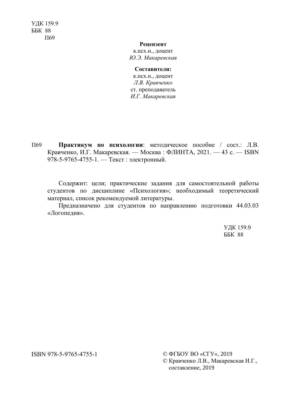Содержит: цели; практические задания для самостоятельной работы студентов по дисциплине «Психология»; необходимый теоретический материал, список рекомендуемой литературы.