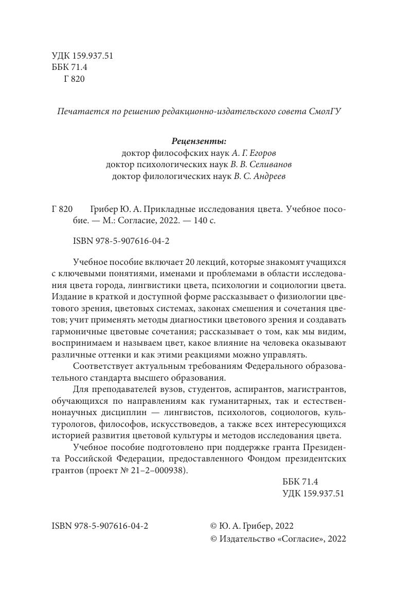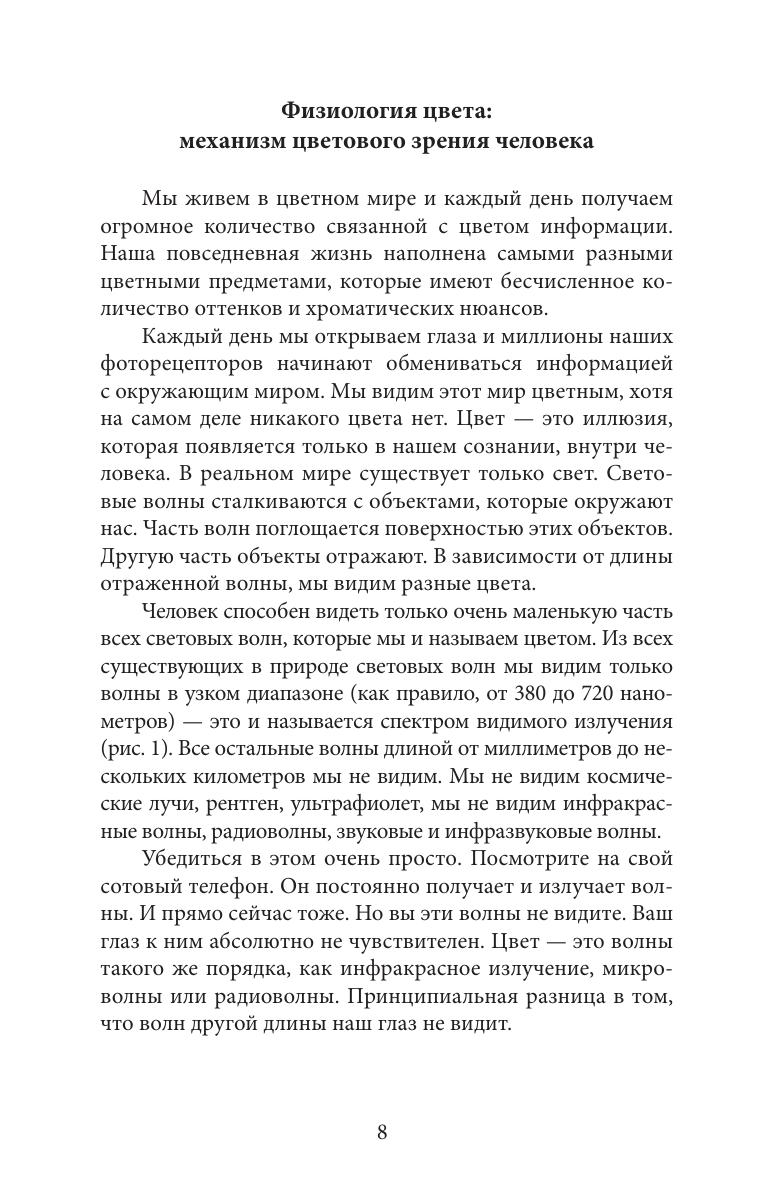 Учебное пособие включает 20 лекций, которые знакомят учащихся с ключевыми понятиями, именами и проблемами в области исследования цвета города, лингвистики цвета, психологии и социологии цвета. Издание в краткой и доступной форме рассказывает о физиологии цветового зрения, цветовых системах, законах смешения и сочетания цветов; учит применять методы диагностики цветового зрения и создавать гармоничные цветовые сочетания; рассказывает о том, как мы видим, воспринимаем и называем цвет, какое влияние на человека оказывают различные оттенки и как этими реакциями можно управлять. Соответствует актуальным требованиям Федерального образовательного стандарта высшего образования. Для преподавателей вузов, студентов, аспирантов, магистрантов, обучающихся по направлениям как гуманитарных, так и естественнонаучных дисциплин — лингвистов, психологов, социологов, культурологов, философов, искусствоведов, а также всех интересующихся историей развития цветовой культуры и методов исследования цвета. Учебное пособие подготовлено при поддержке гранта Президента Российской Федерации, предоставленного Фондом президентских грантов (проект № 21–2–000938).