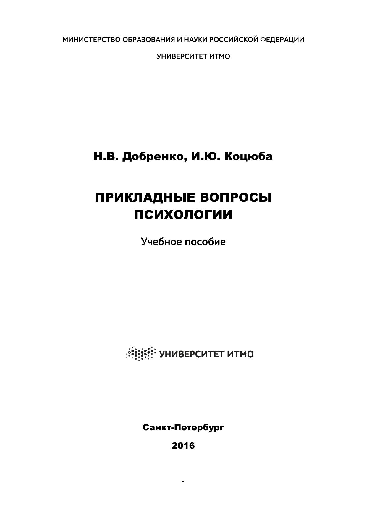 Прикладные вопросы психологии: Учебное пособие