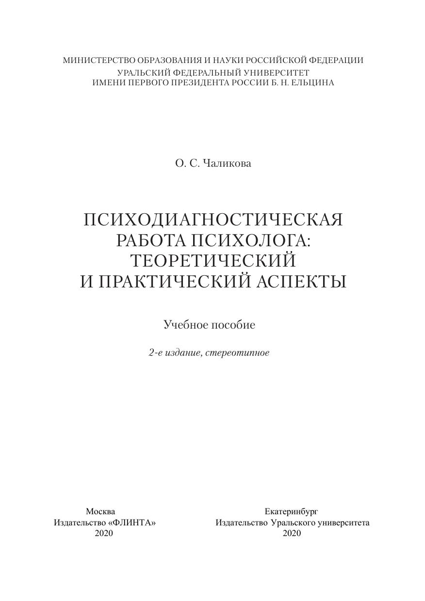 Психодиагностическая работа психолога: теоретический и практический аспекты