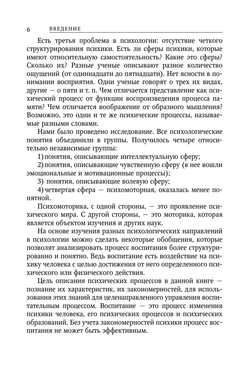 Для психологов будет интересен подход к процессу воспитания с позиций элементарной психологии. Автор делает попытку разрешить вопрос, что собой представляют психические образования, которые можно каким-либо образом определять, формировать и развивать. Можно ли психику описать тремя сферами: когнитивной, чувственной и волевой?
