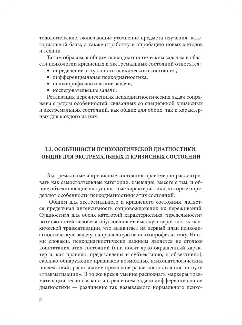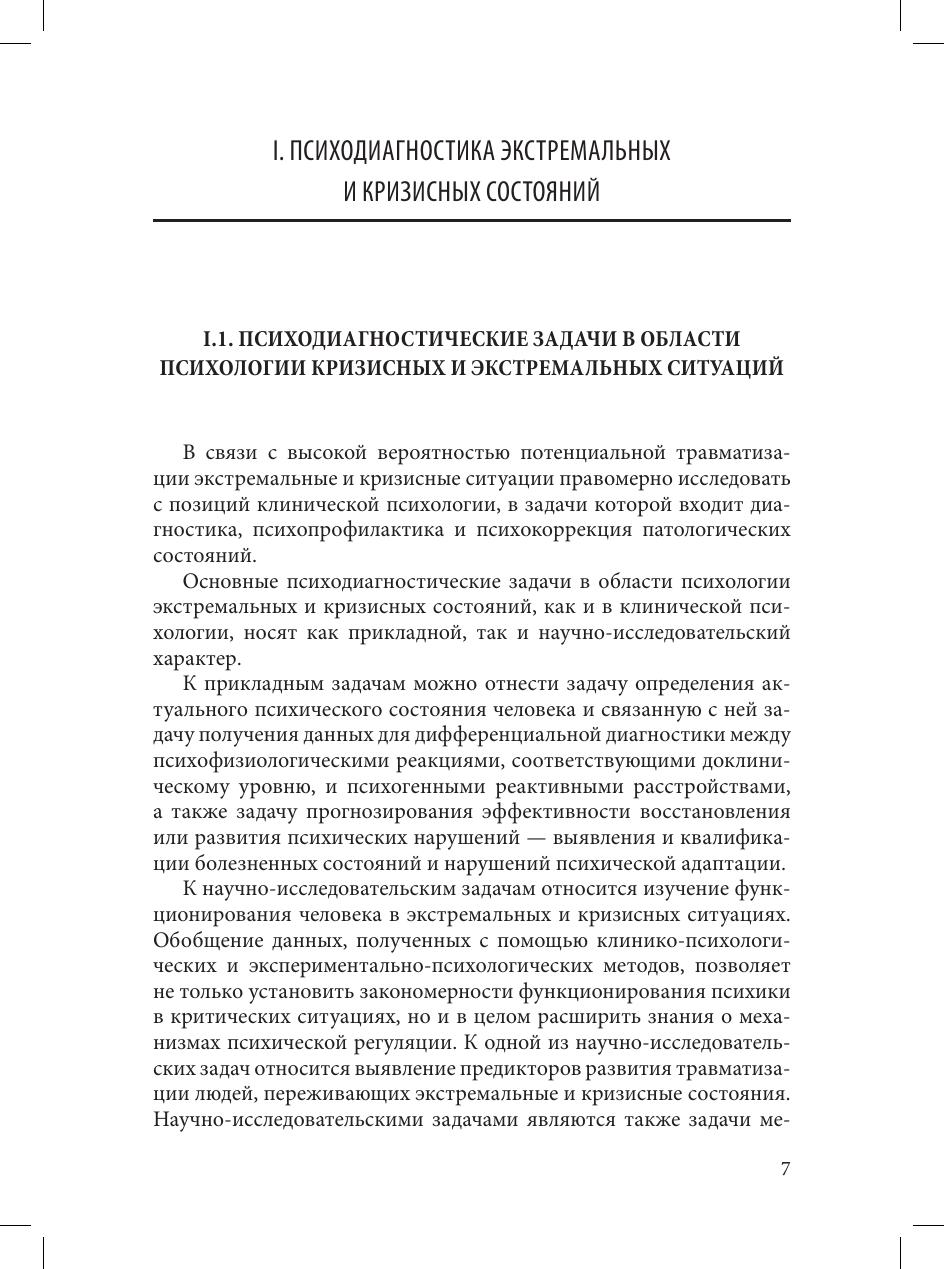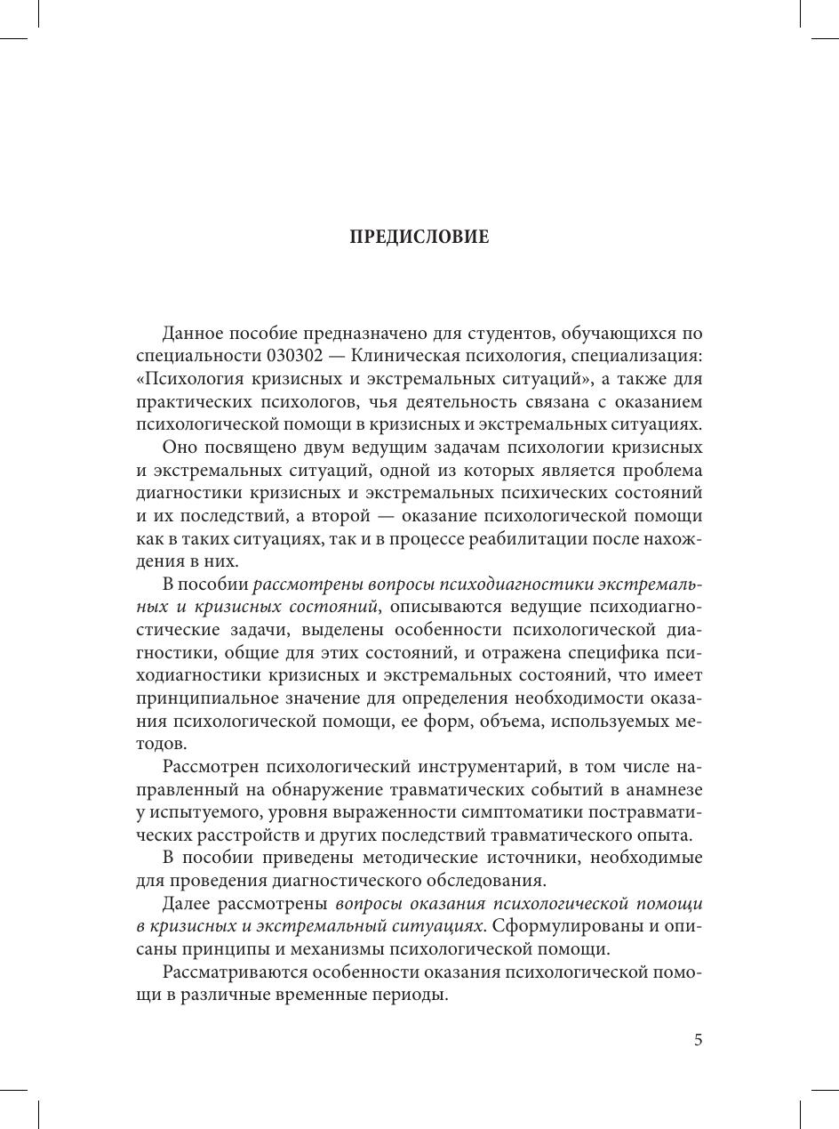 В пособии рассмотрены особенности психодиагностики в кризисных и экстремальных ситуациях, дается ориентация на профессиональную постановку психодиагностических задач и подбор соответствующих диагностических методов, содержится разносторонняя информация, необходимая для овладения различными способами оказания психологической помощи людям, пережившим экстремальные и кризисные ситуации.