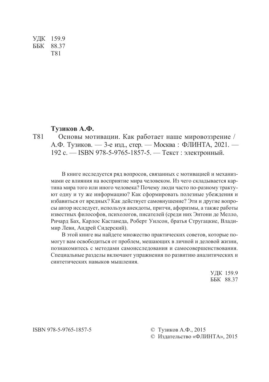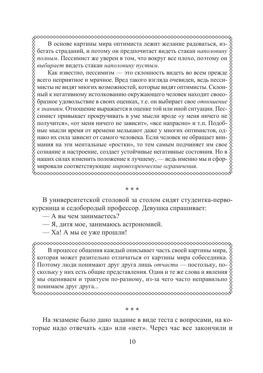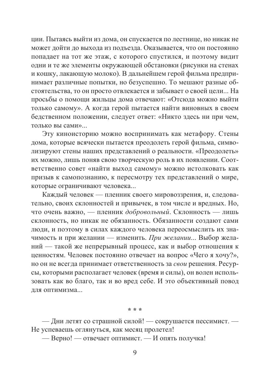 В книге исследуется ряд вопросов, связанных с мотивацией и механизмами ее влияния на восприятие мира человеком. Из чего складывается картина мира того или иного человека? Почему люди часто по-разному трактуют одну и ту же информацию? Как сформировать полезные убеждения и избавиться от вредных? Как действует самовнушение? Эти и другие вопросы автор исследует, используя анекдоты, притчи, афоризмы, а также работы известных философов, психологов, писателей (среди них Энтони де Мелло, Ричард Бах, Карлос Кастанеда, Роберт Уилсон, братья Стругацкие, Владимир Леви, Андрей Сидерский).