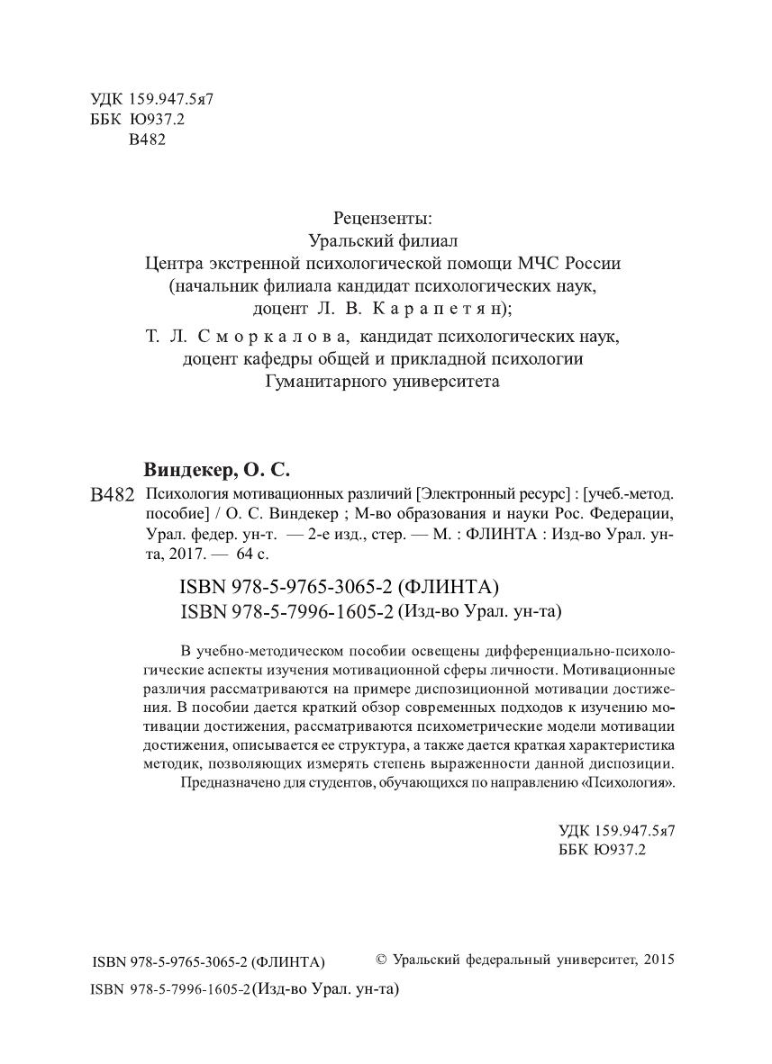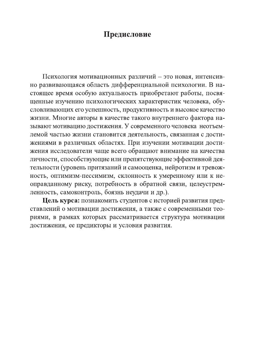 В учебно-методическом пособии освещены дифференциально-психологические аспекты изучения мотивационной сферы личности. Мотивационные различия рассматриваются на примере диспозиционной мотивации достижения. В пособии дается краткий обзор современных подходов к изучению мотивации достижения, рассматриваются психометрические модели мотивации достижения, описывается ее структура, а также дается краткая характеристика методик, позволяющих измерять степень выраженности данной диспозиции.