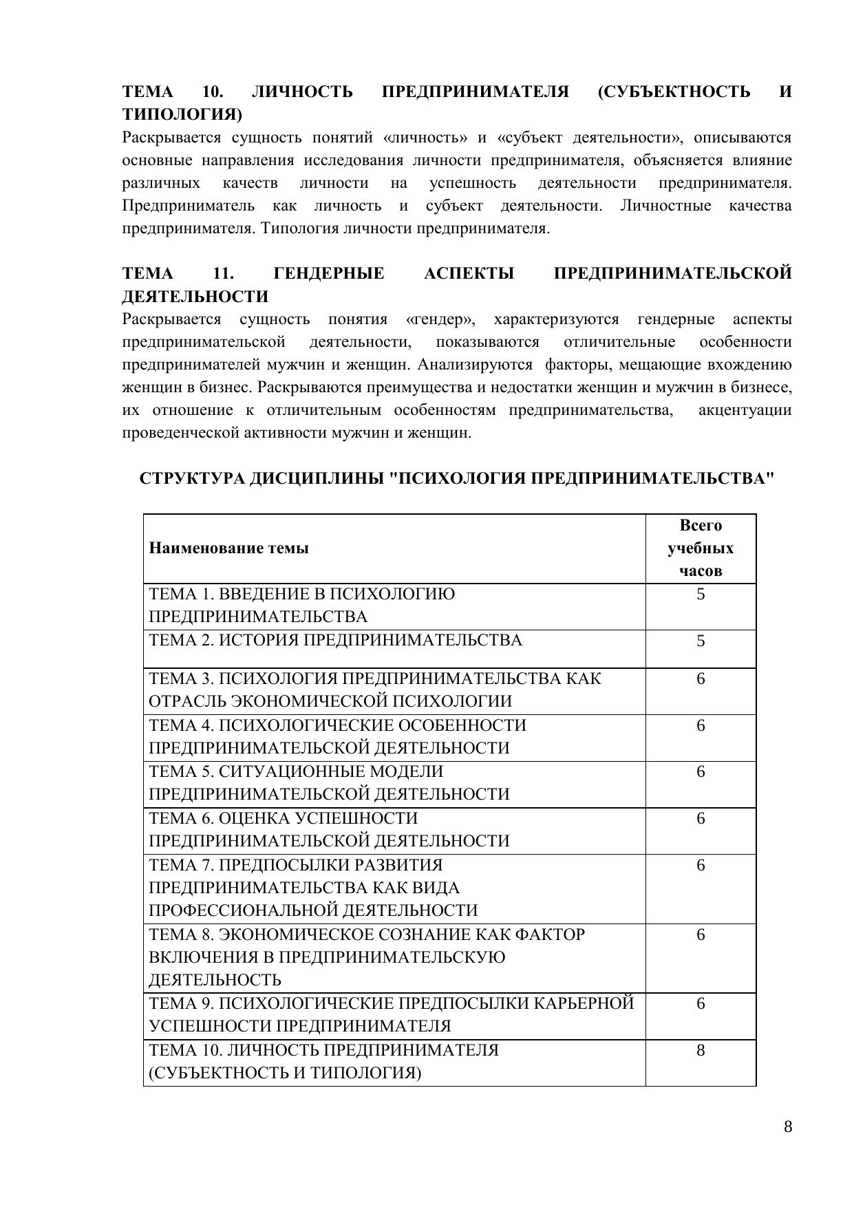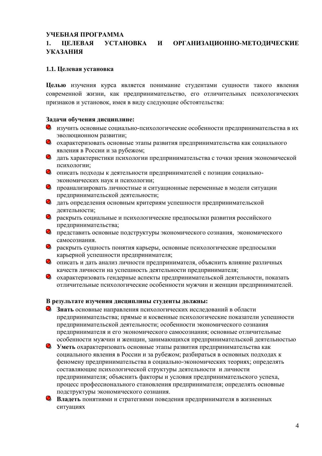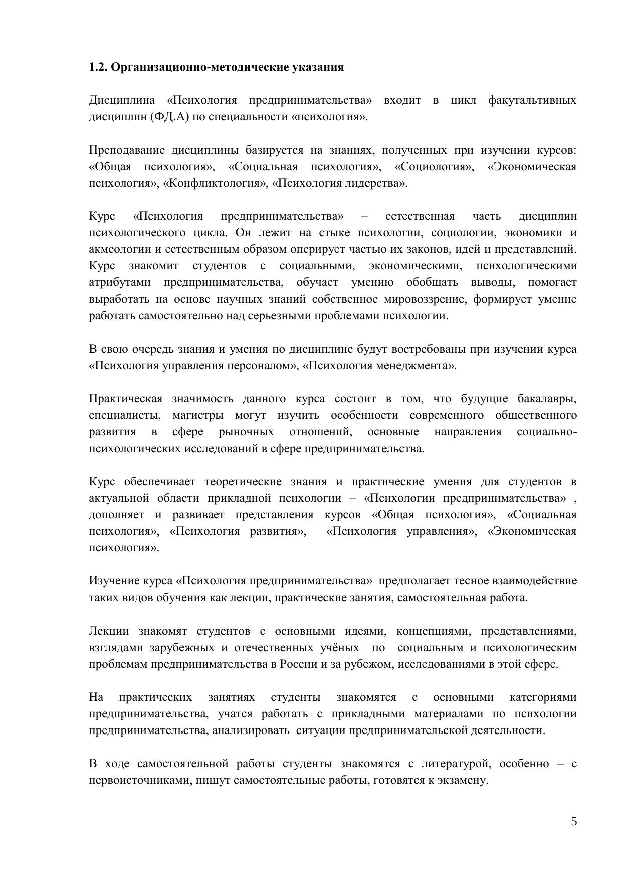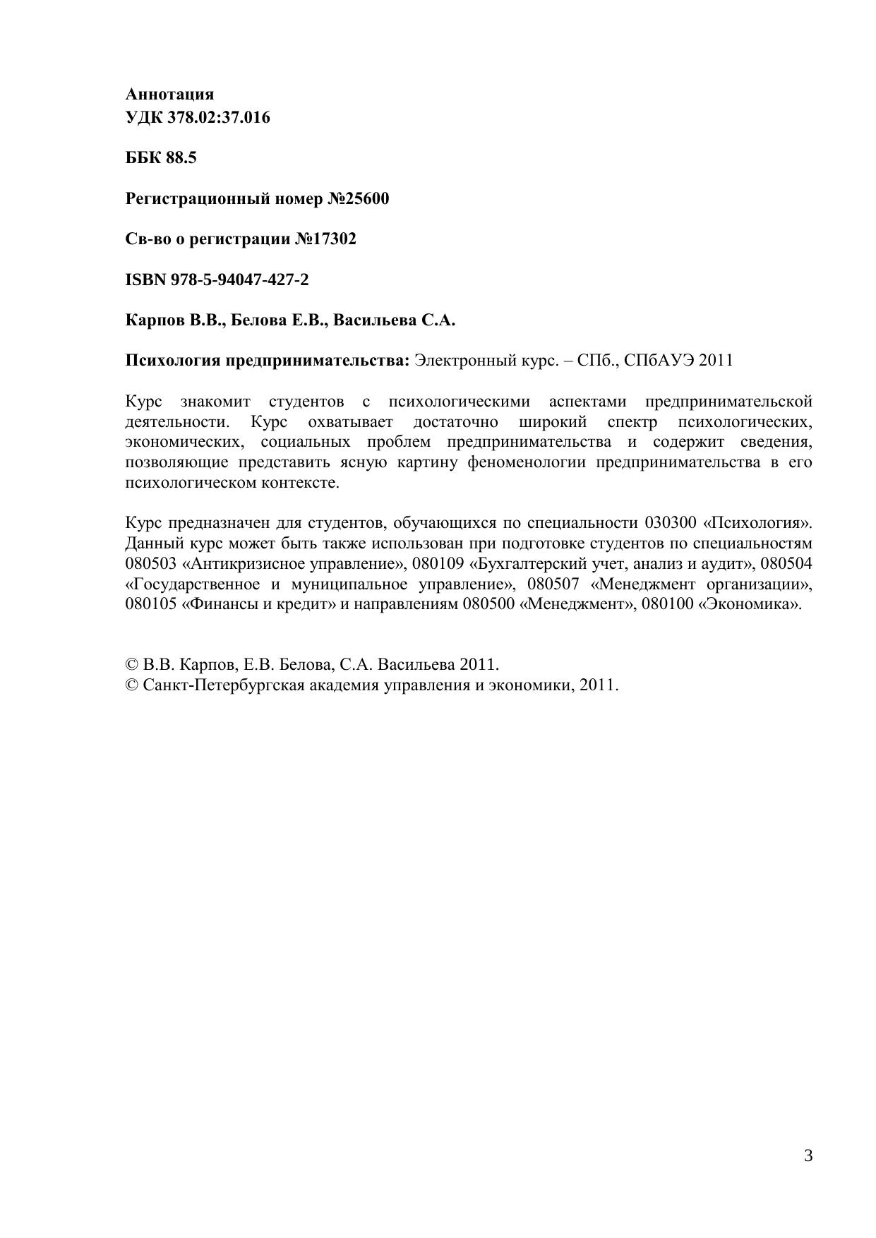 Курс знакомит студентов с психологическими аспектами предпринимательской деятельности. Курс охватывает достаточно широкий спектр психологических, экономических, социальных проблем предпринимательства и содержит сведения, позволяющие представить ясную картину феноменологии предпринимательства в его психологическом контексте. Курс предназначен для студентов, обучающихся по специальности 030300 «Психология». Данный курс может быть также использован при подготовке студентов по специальностям 080503 «Антикризисное управление», 080109 «Бухгалтерский учет, анализ и аудит», 080504 «Государственное и муниципальное управление», 080507 «Менеджмент организации», 080105 «Финансы и кредит» и направлениям 080500 «Менеджмент», 080100 «Экономика». Электронный курс.