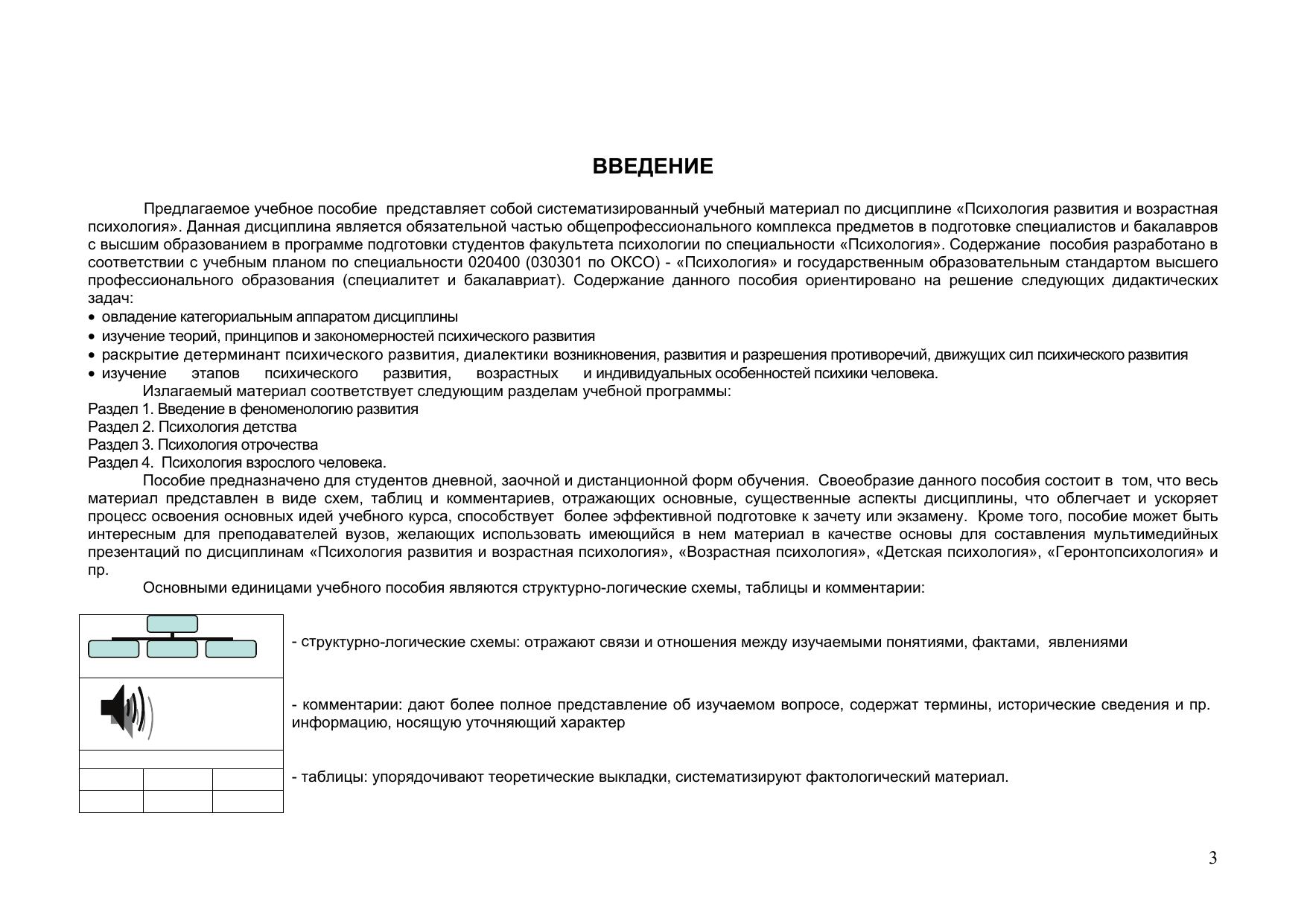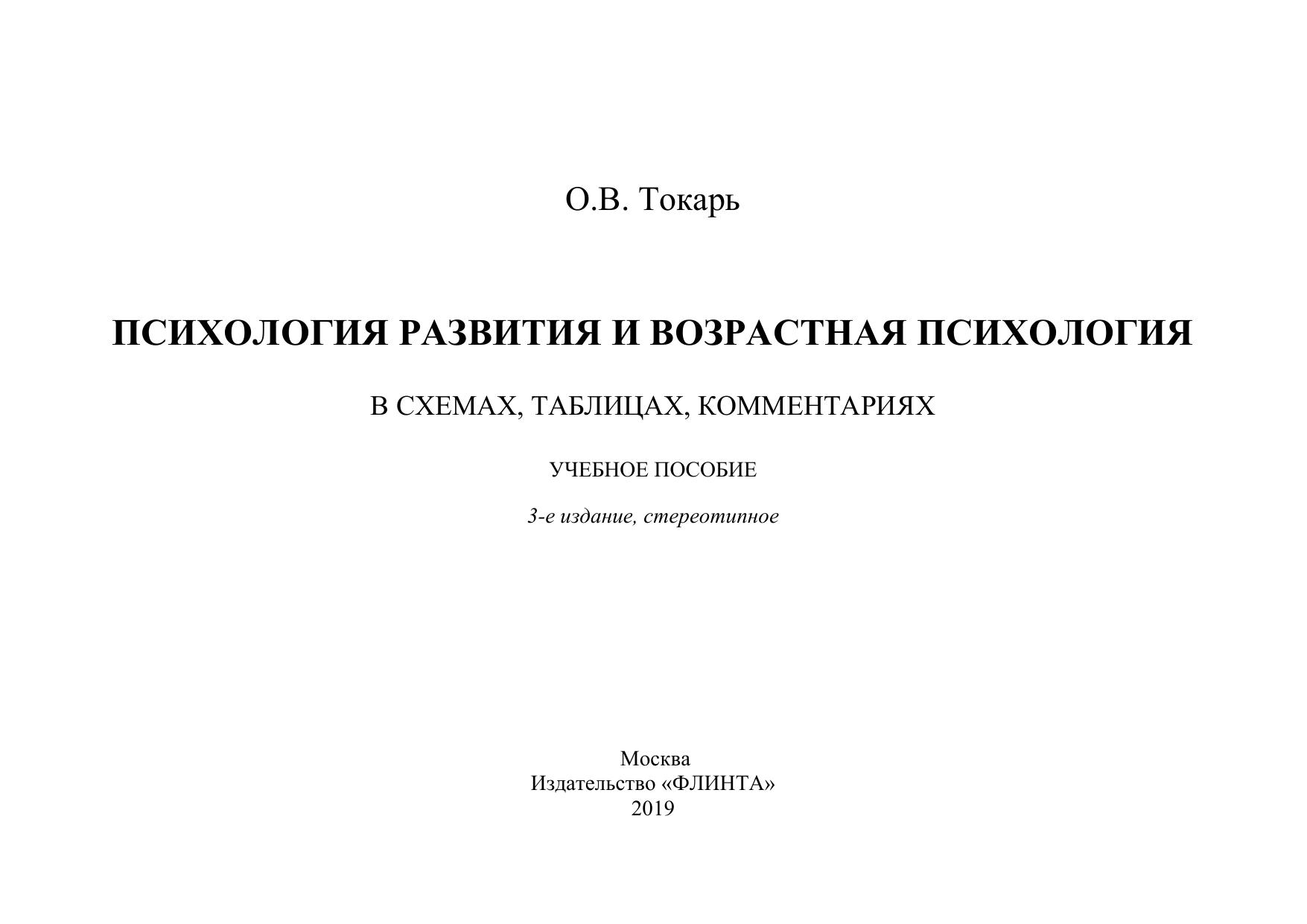 обучения по специальностям «Психология», «Педагогика и психология» (специалитет и бакалавриат). Содержит 32 схемы, 20 таблиц, 20 комментариев, 2 рисунка. Материал пособия может быть использован в качестве основы для составления мультимедийных презентаций по дисциплинам «Психология развития и возрастная психология», «Возрастная психология».