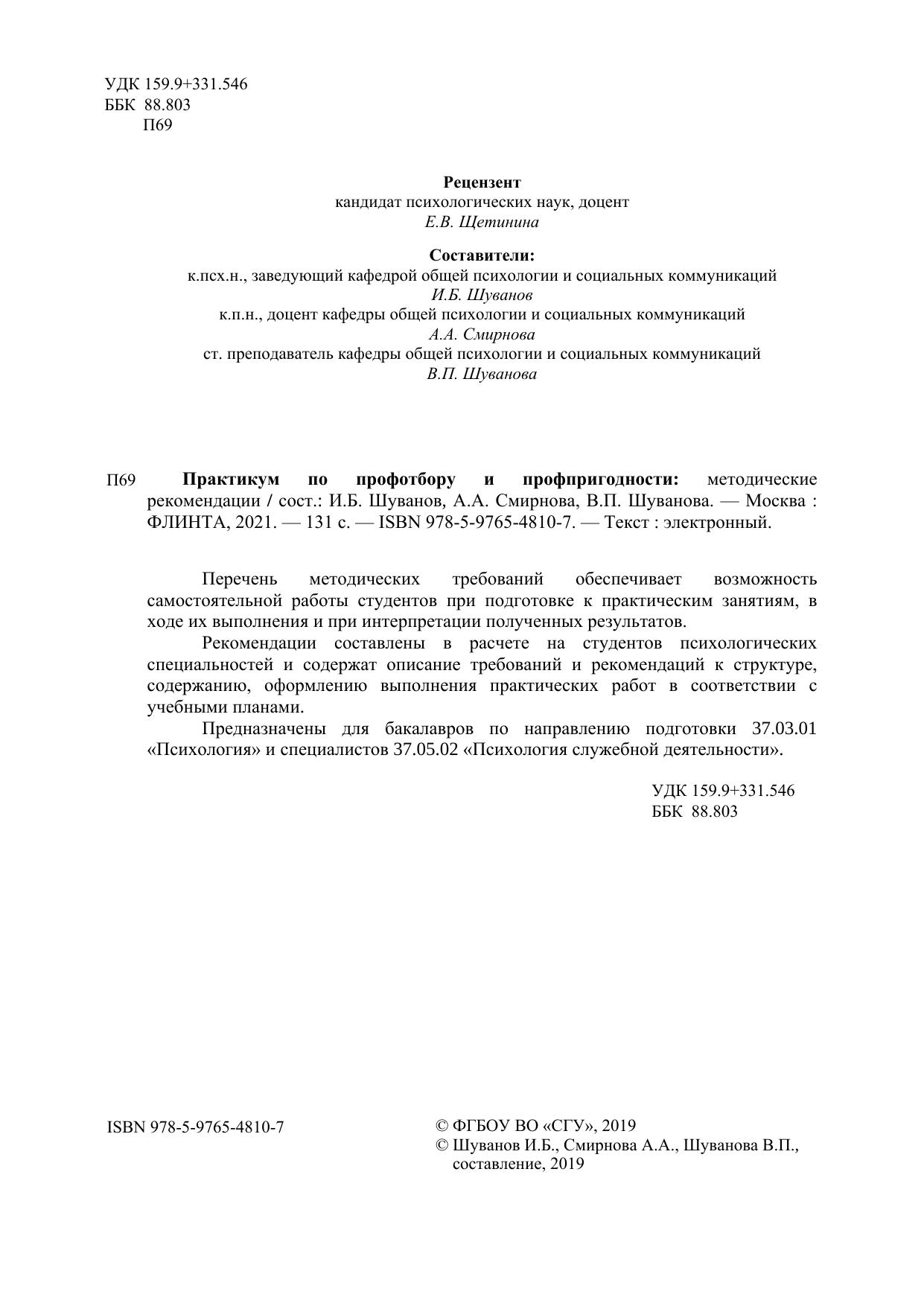 Предназначены для бакалавров по направлению подготовки 37.03.01 «Психология» и специалистов 37.05.02 «Психология служебной деятельности».