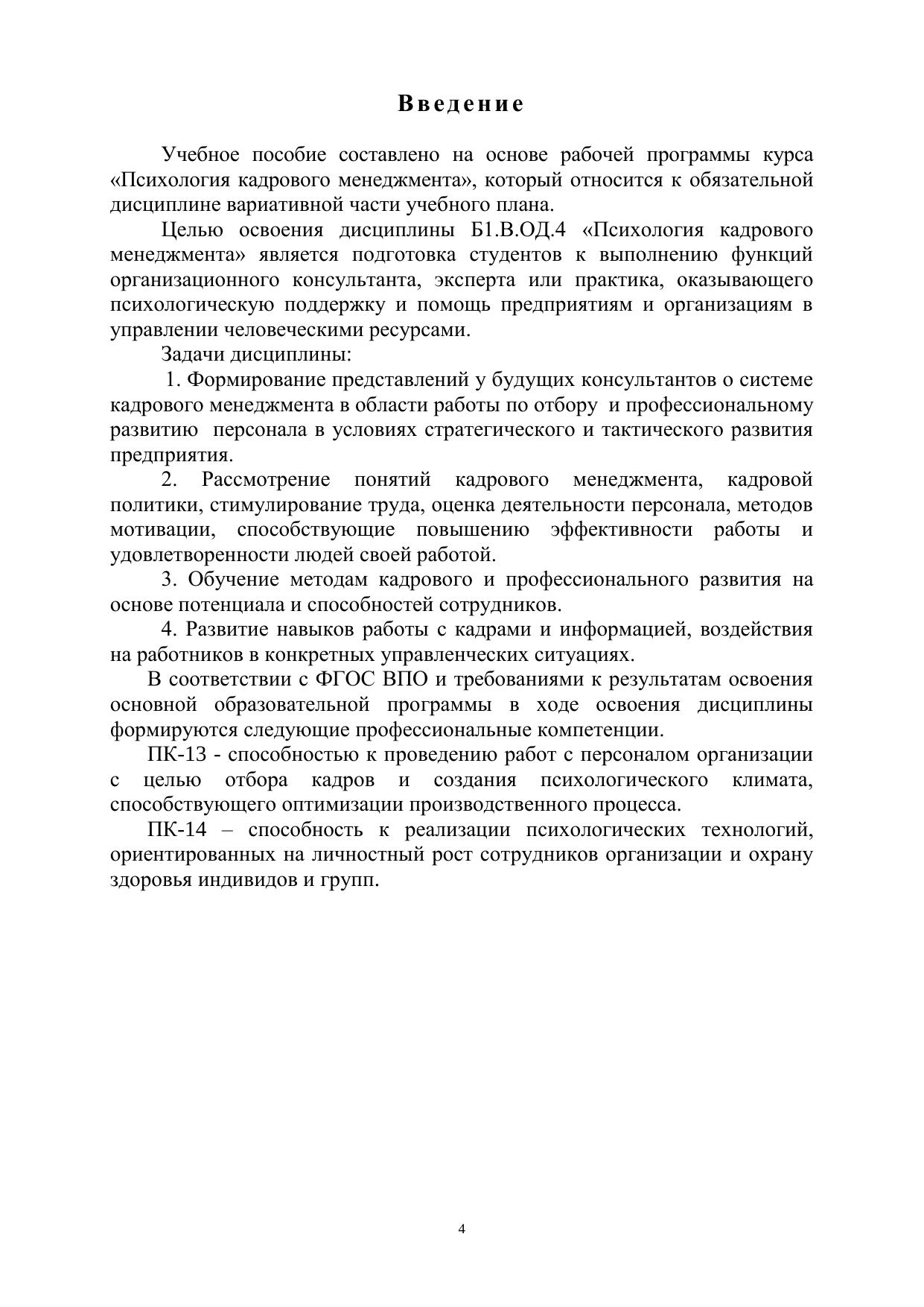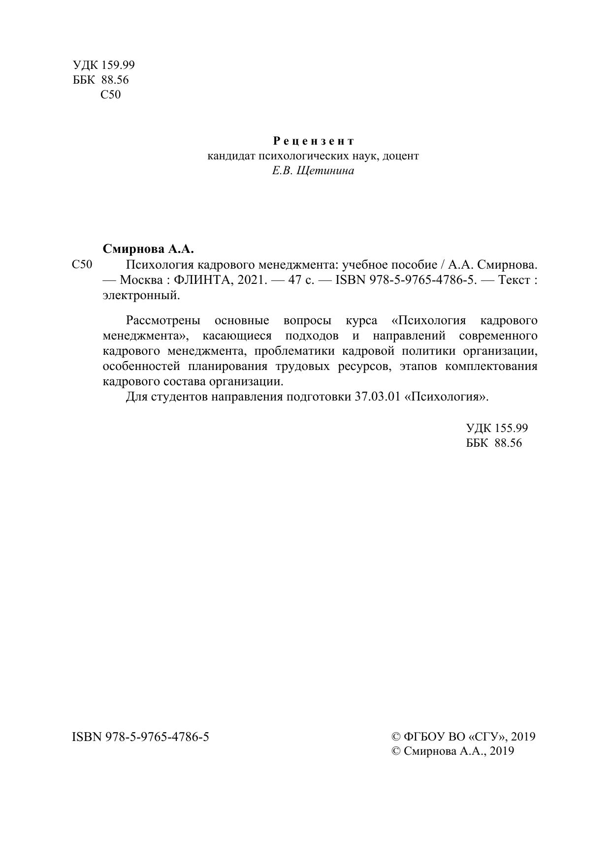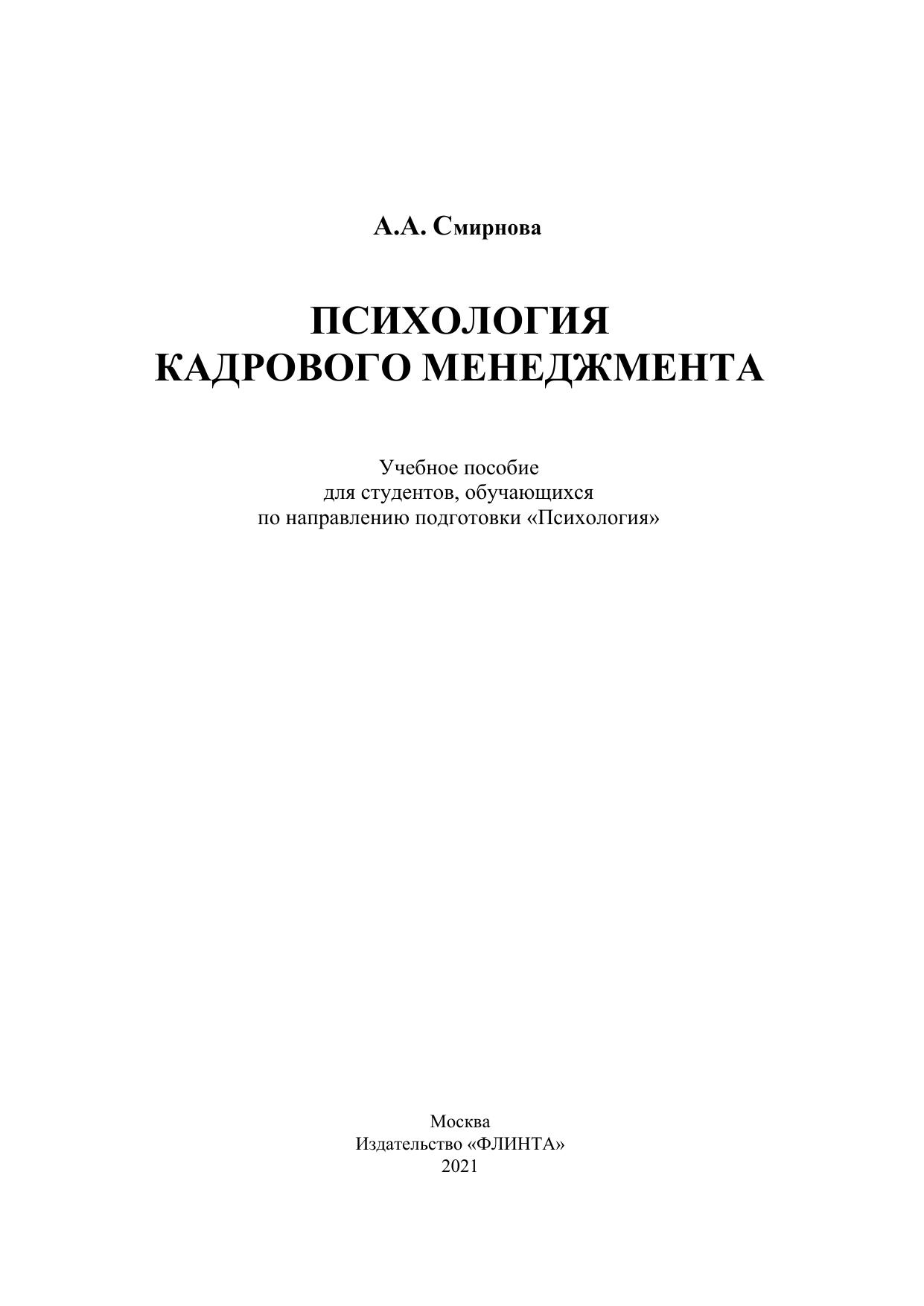 Рассмотрены основные вопросы курса «Психология кадрового менеджмента», касающиеся подходов и направлений современного кадрового менеджмента, проблематики кадровой политики организации, особенностей планирования трудовых ресурсов, этапов комплектования кадрового состава организации. Для студентов направления подготовки 37.03.01 «Психология».