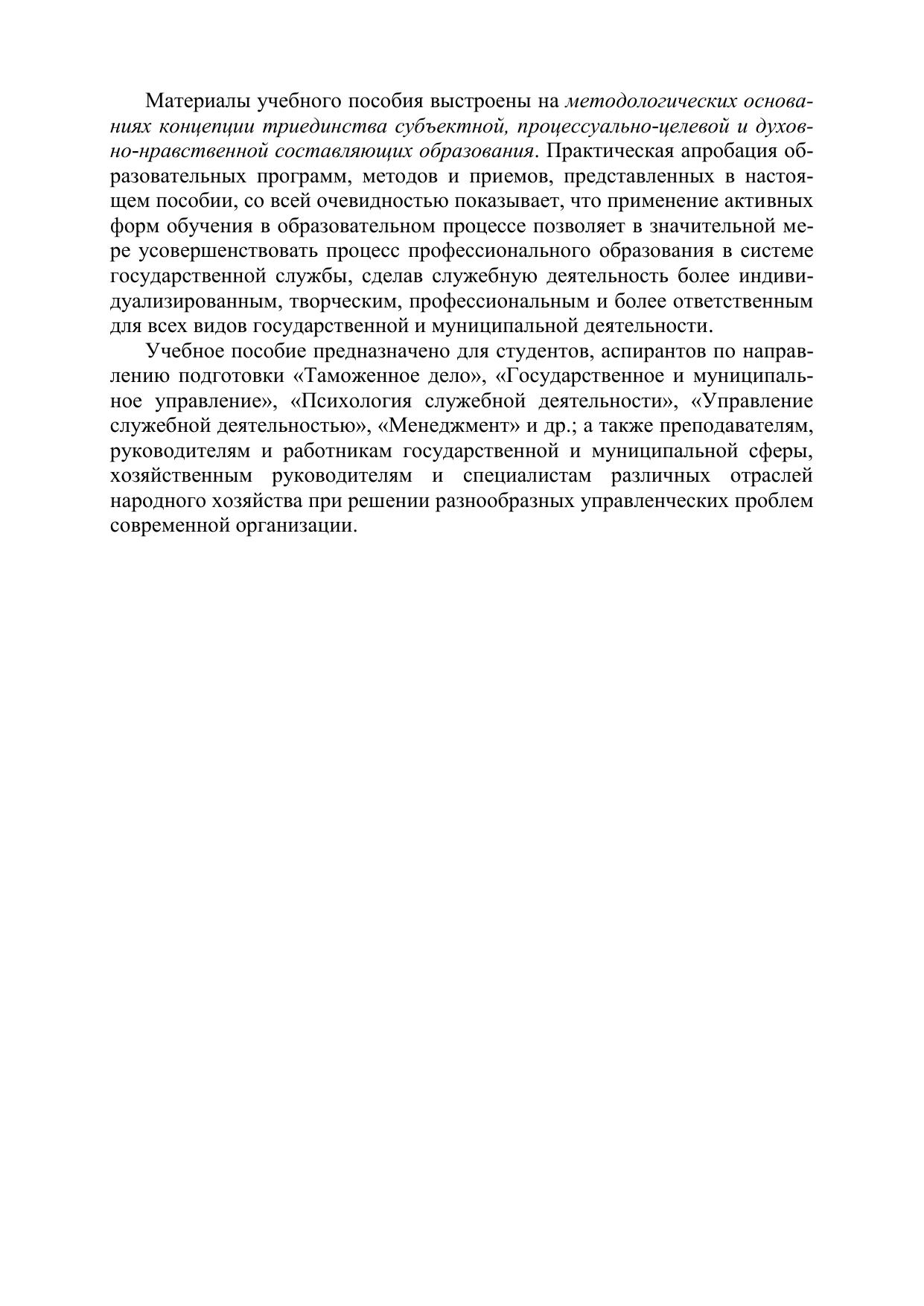 Пособие направлено на актуализацию и систематизацию прикладных педагогических знаний по применению активных форм обучения (социально-ориентированных технологий) в процессе профессионального образования кадров государственной службы.