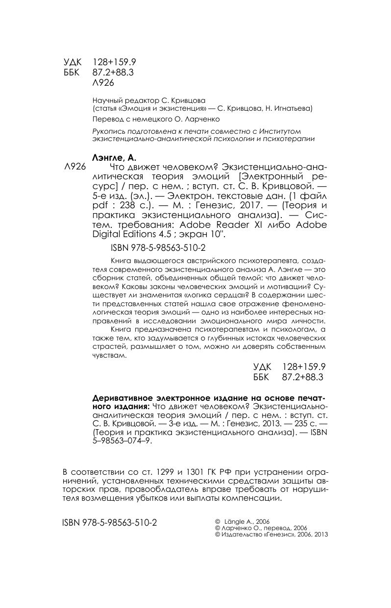 Книга предназначена психотерапевтам и психологам, а также тем, кто задумывается о глубинных истоках человеческих страстей, размышляет о том, можно ли доверять собственным чувствам.