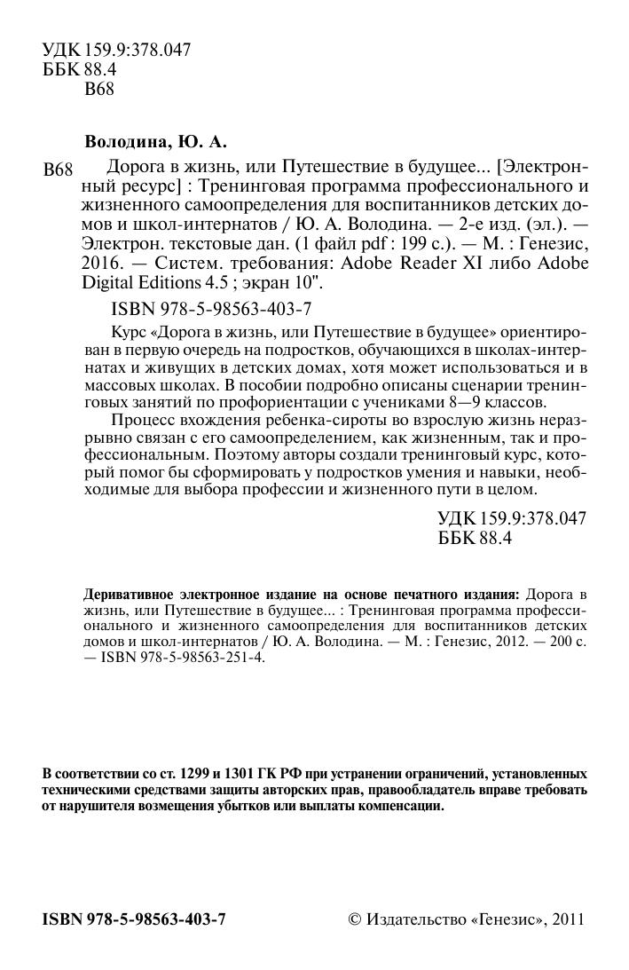 Курс «Дорога в жизнь, или Путешествие в будущее» ориентирован в первую очередь на подростков, обучающихся в школах-интернатах и живущих в детских домах, хотя может использоваться и в массовых школах. В пособии подробно описаны сценарии тренинговых занятий по профориентации с учениками 8—9 классов.