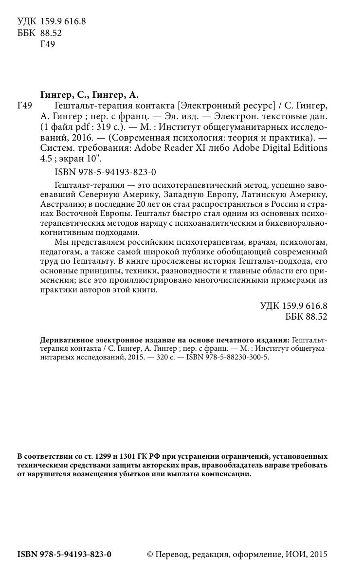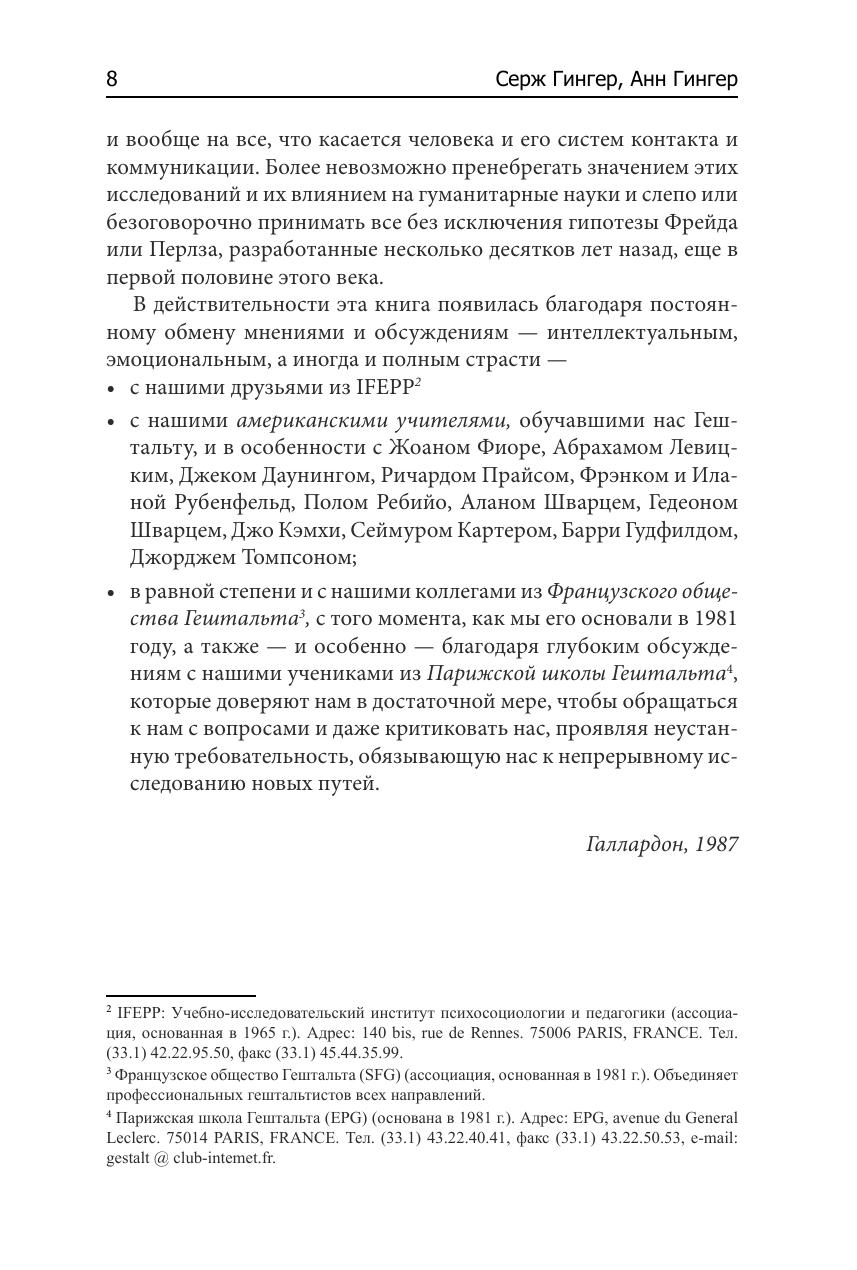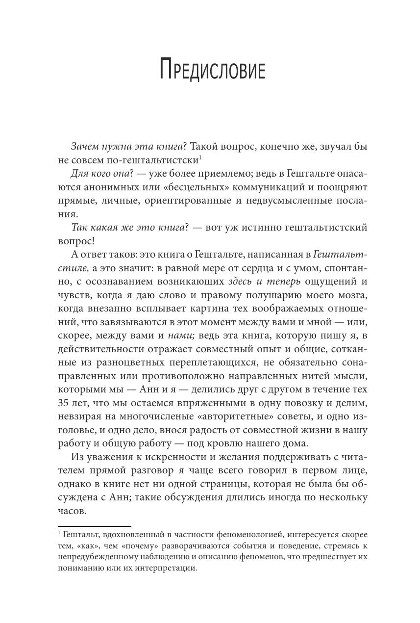 Мы представляем российским психотерапевтам, врачам, психологам, педагогам, а также самой широкой публике обобщающий современный труд по Гештальту. В книге прослежены история Гештальт-подхода, его основные принципы, техники, разновидности и главные области его применения; все это проиллюстрировано многочисленными примерами из практики авторов этой книги.
