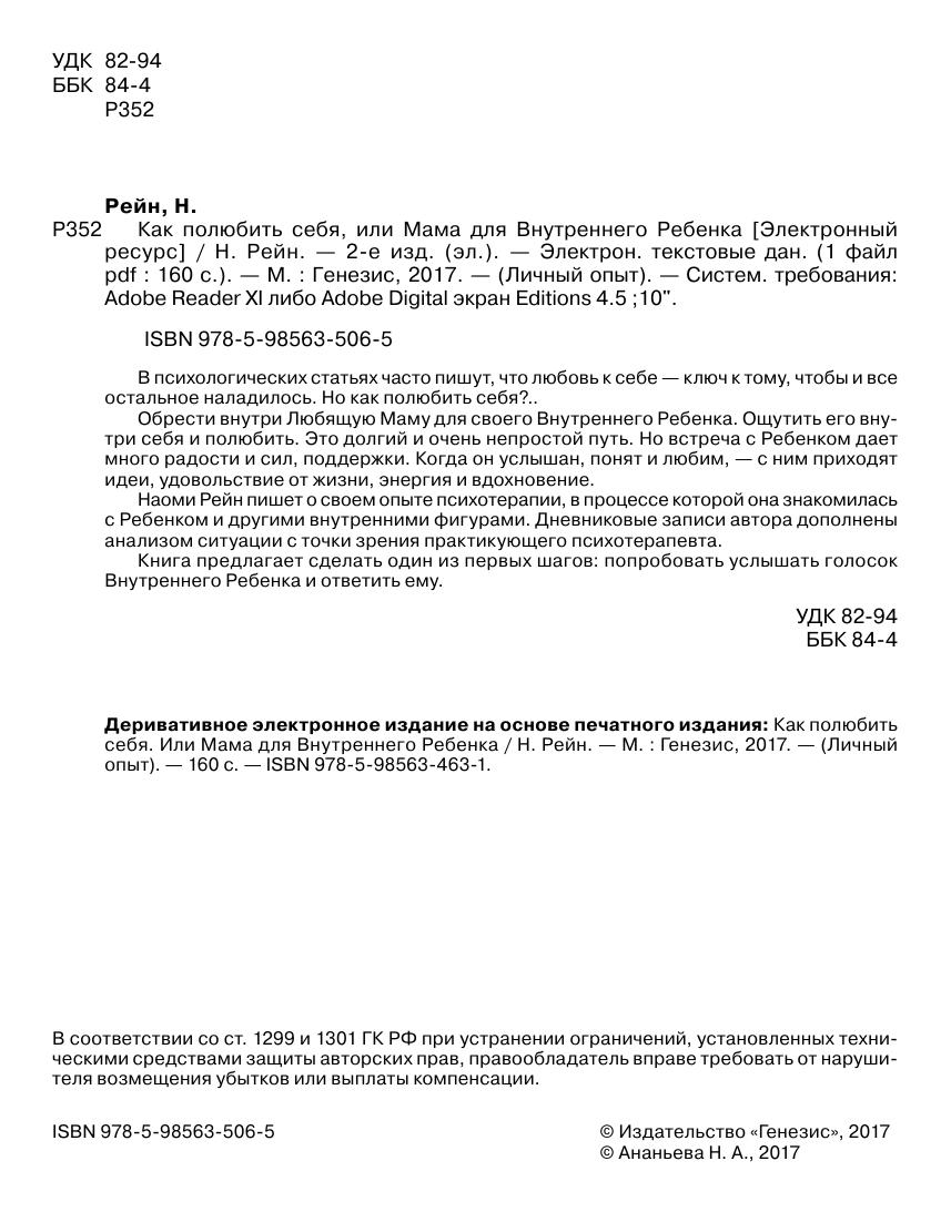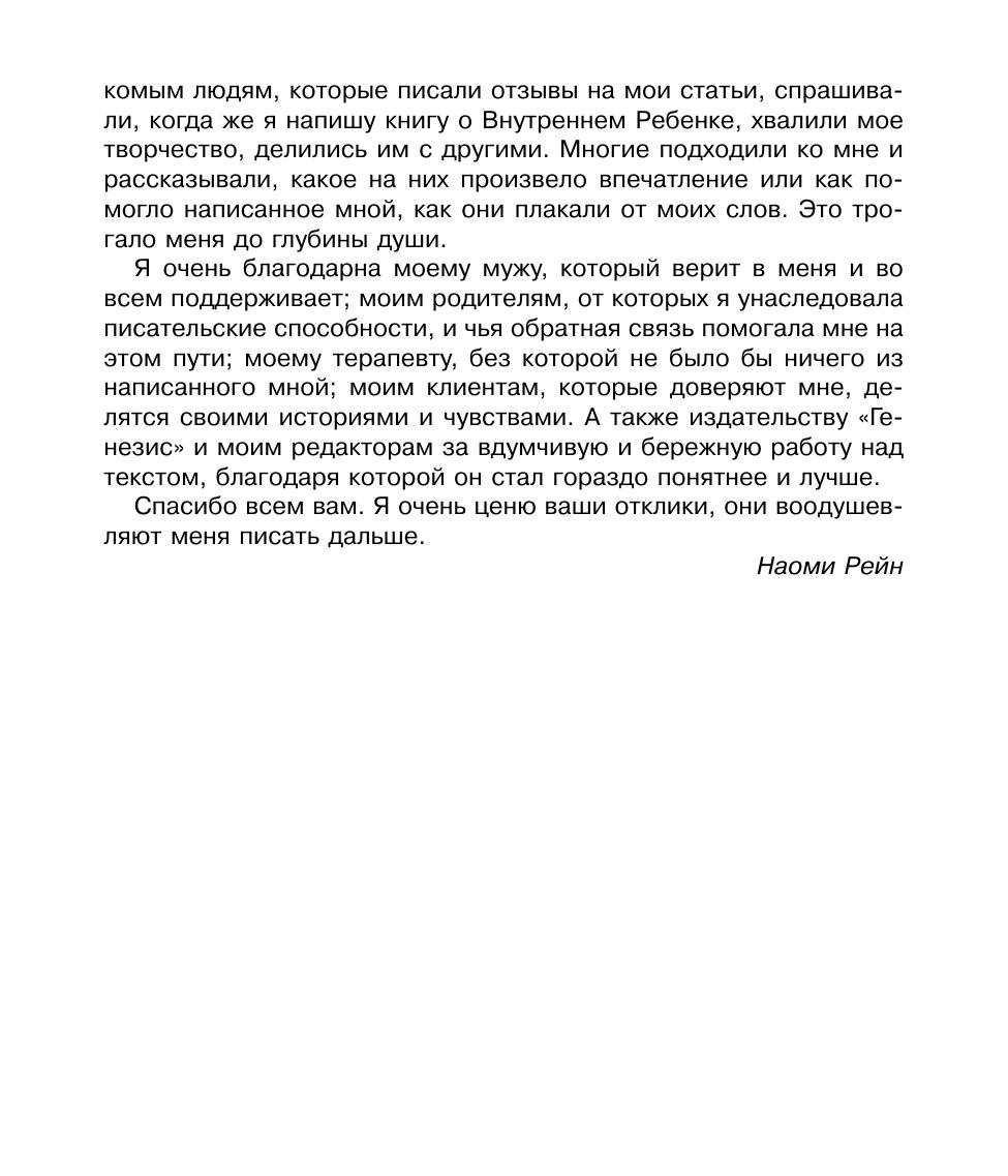 Наоми Рейн пишет о своем опыте психотерапии, в процессе которой она знакомилась с Ребенком и другими внутренними фигурами. Дневниковые записи автора дополнены анализом ситуации с точки зрения практикующего психотерапевта.