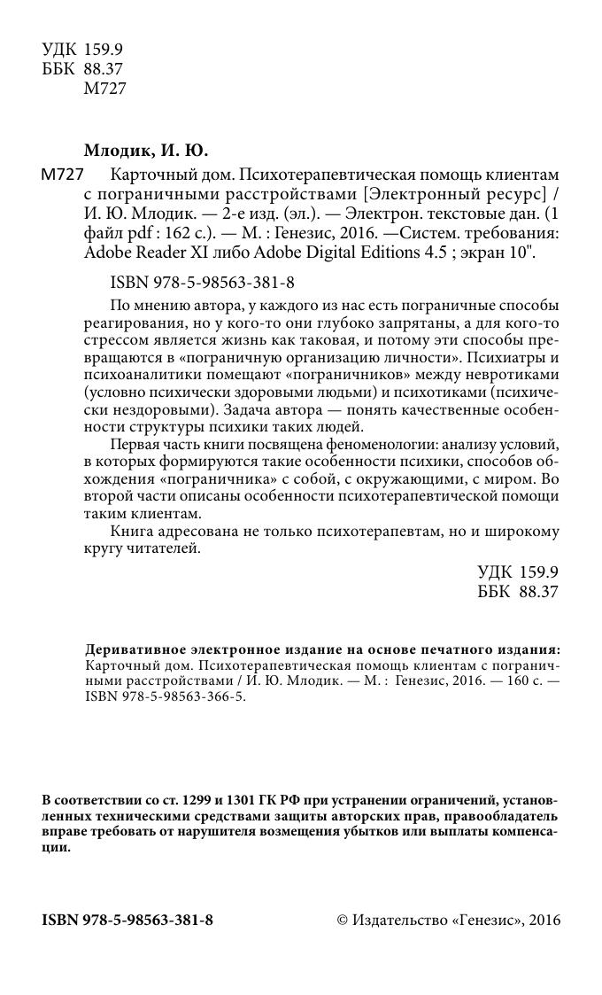 Карточный дом. Психотерапевтическая помощь клиентам с пограничными расстройствами